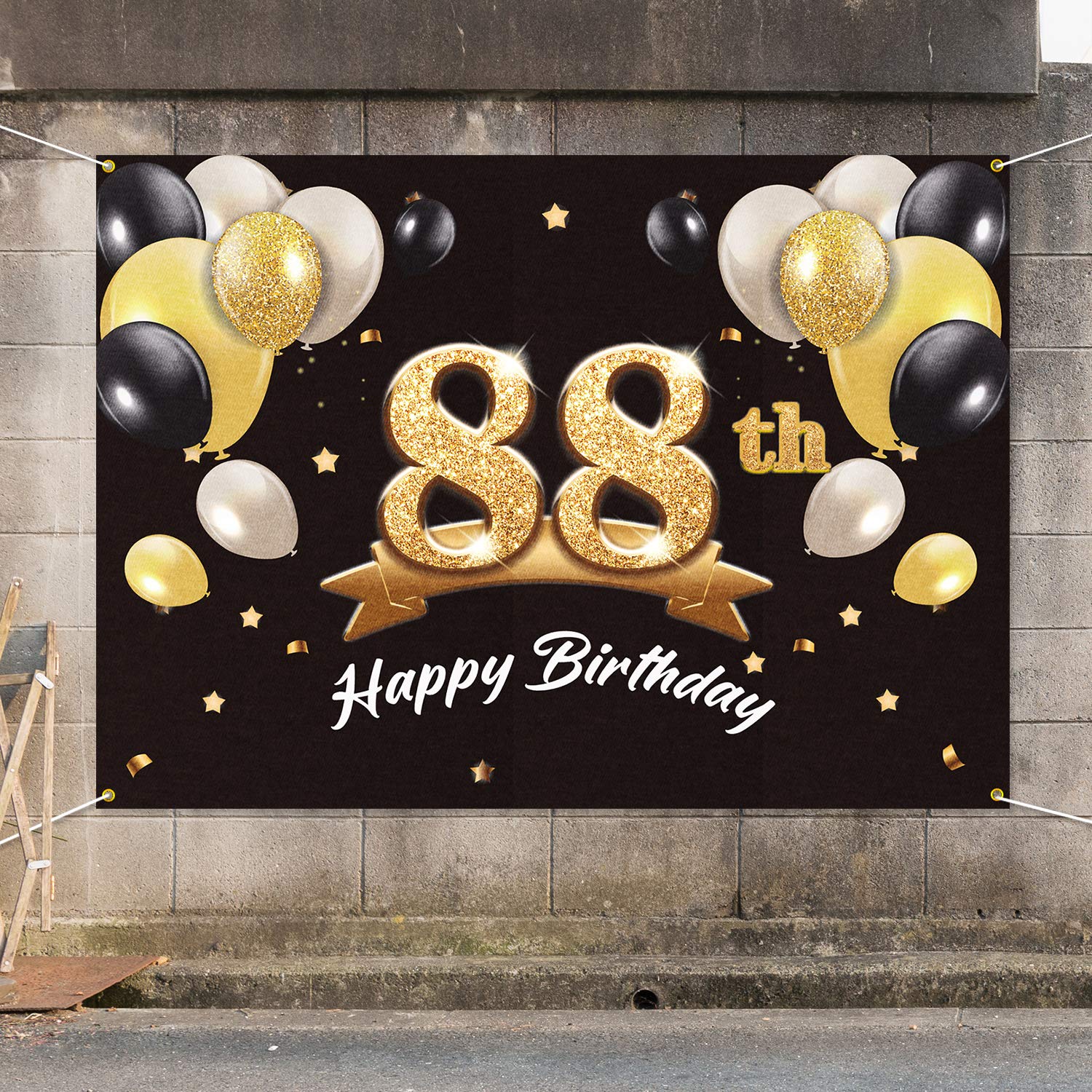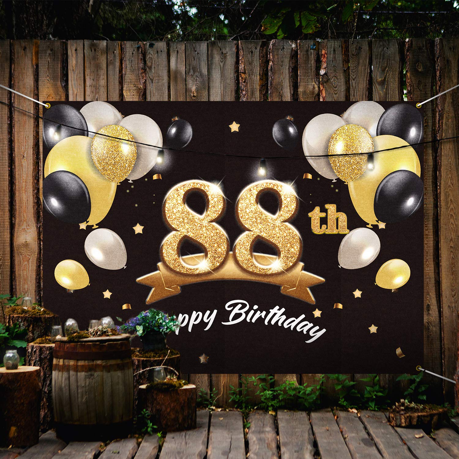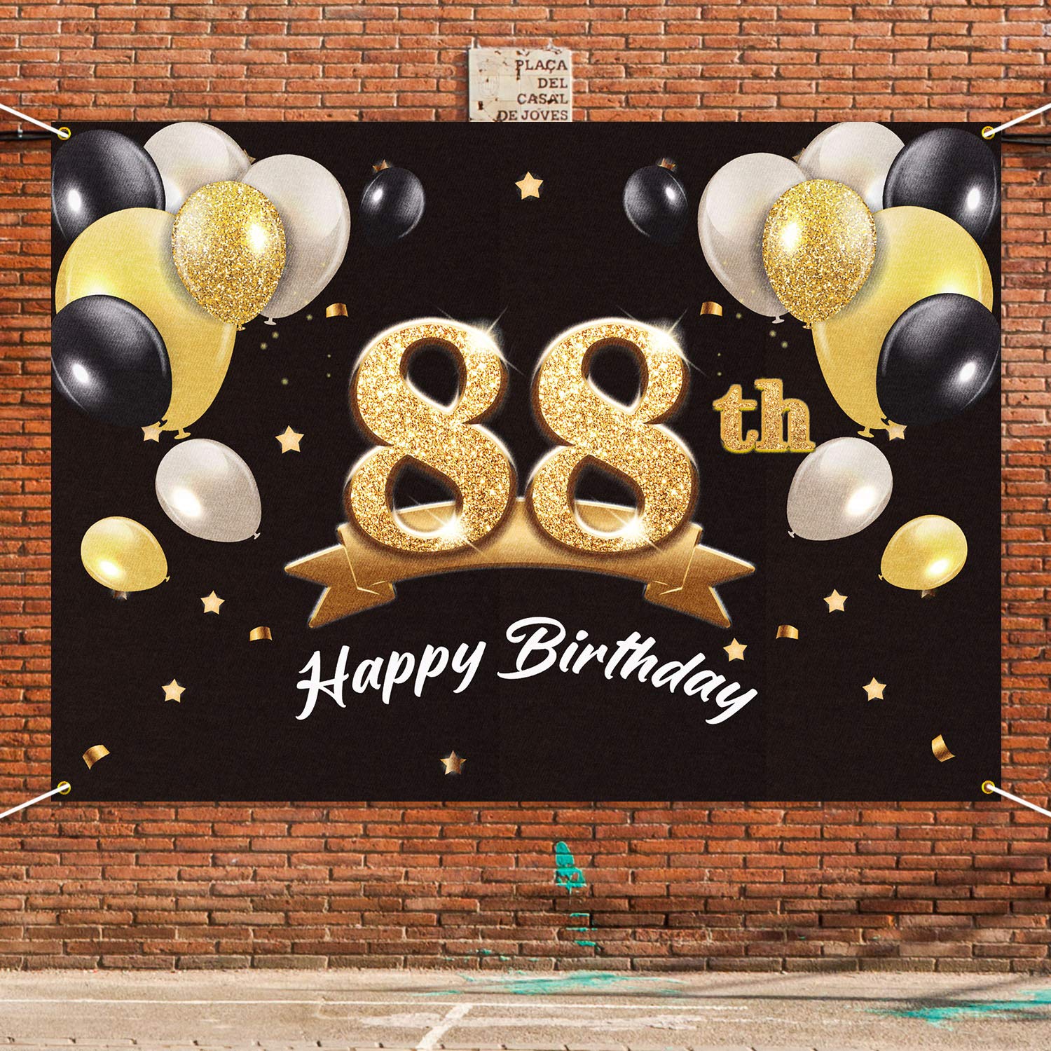 YOU WILL GET One birthday backdrop(3.9 x 5.9 ft) Strings for hanging PRODUCT DETAILS Lightweight material, having 4 holes with gold frames at corners, which makes it very easy and convenient to hang it up. PERFECT SIZE Our backdrop can play a good role in photo booth or dessert table decorations because of its appropriate size GREAT DECOR With the high definition printing technology, the backdrop will be a light in your birthday party and leave a good memory for everybody.