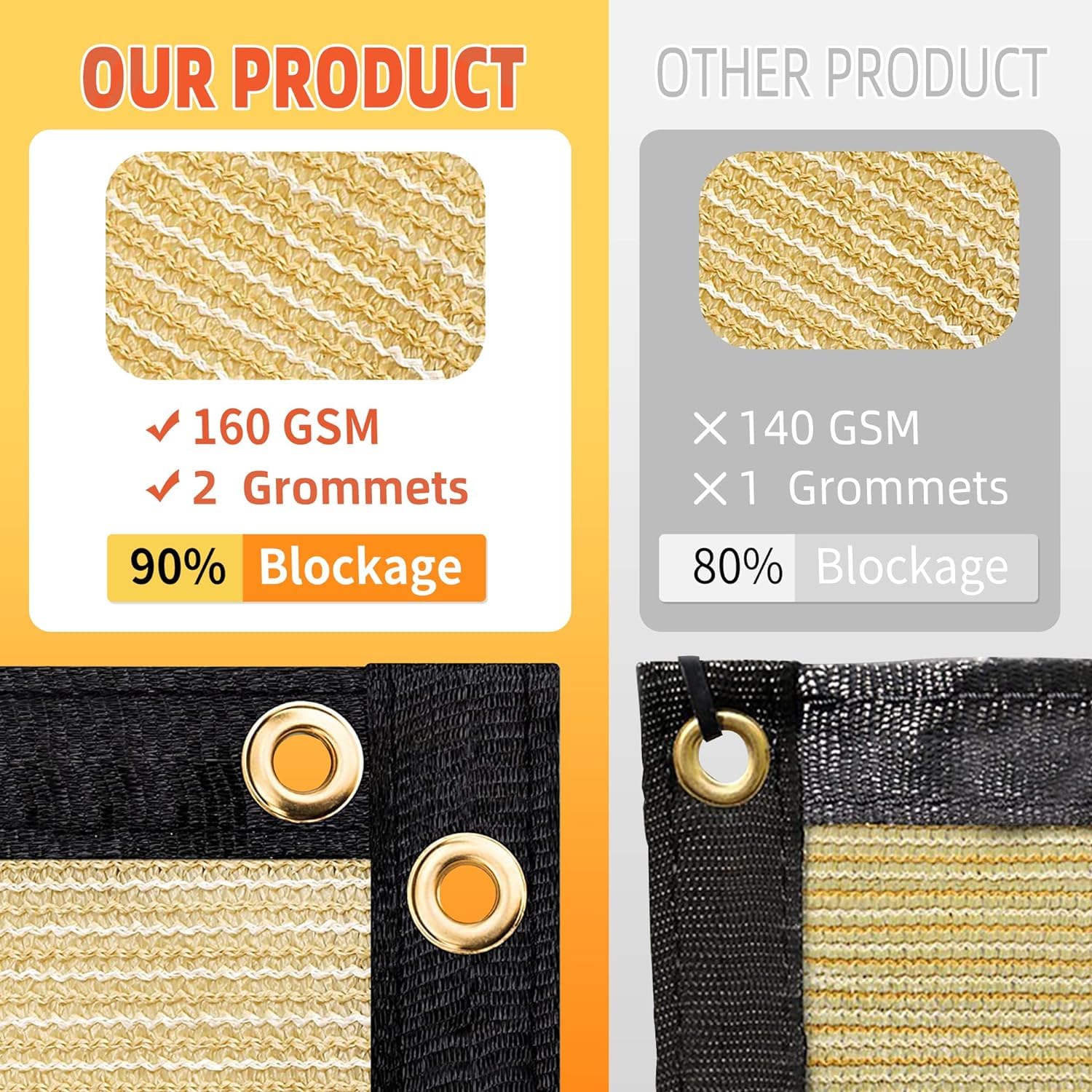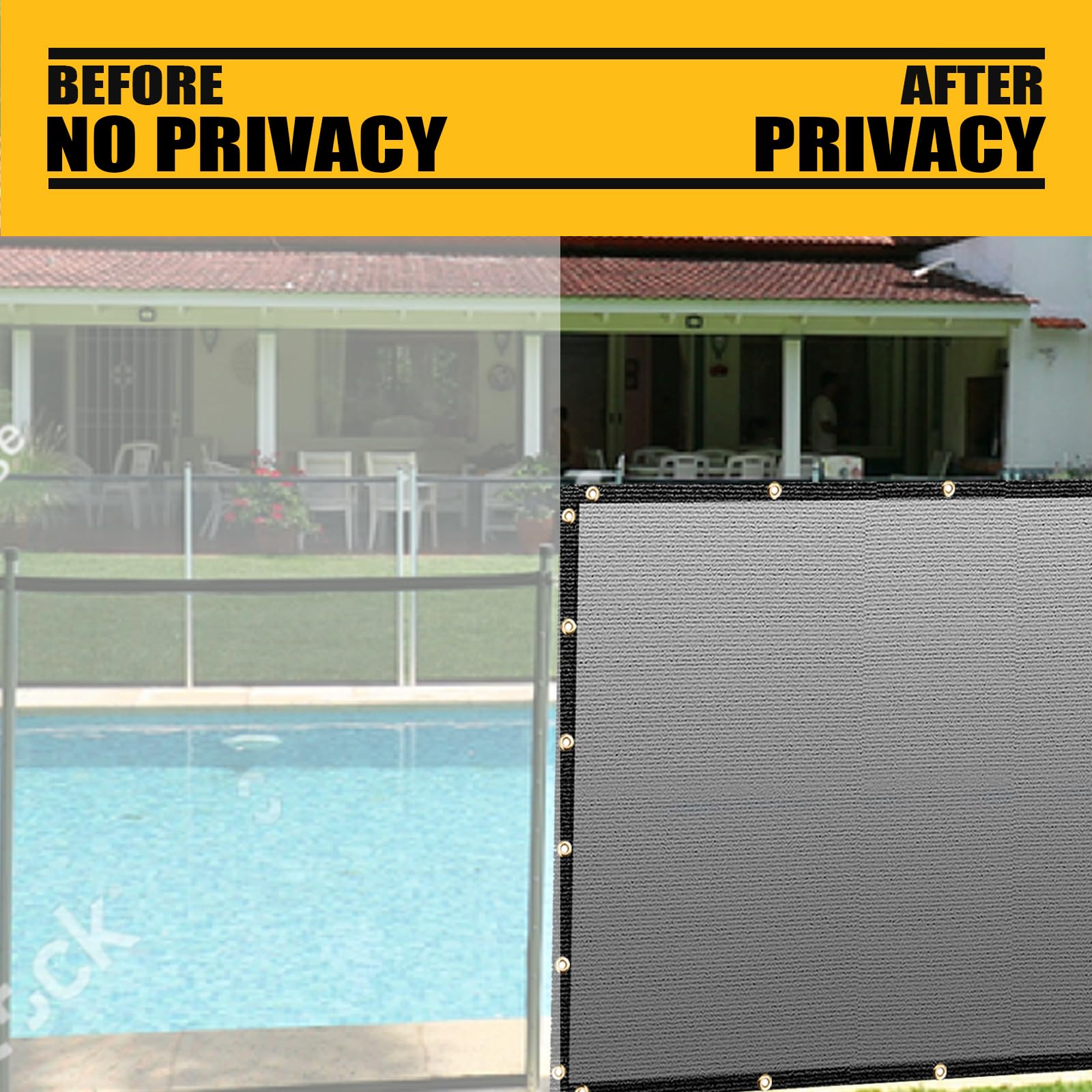 The fabric material is made of polyethylene, offers 90% visibility blockage, it has a long lifespan under outdoor UV, we only use the virgin material, not recycled. UV-resistant compound has been added to the material, provides up to 95% UV blockage.
