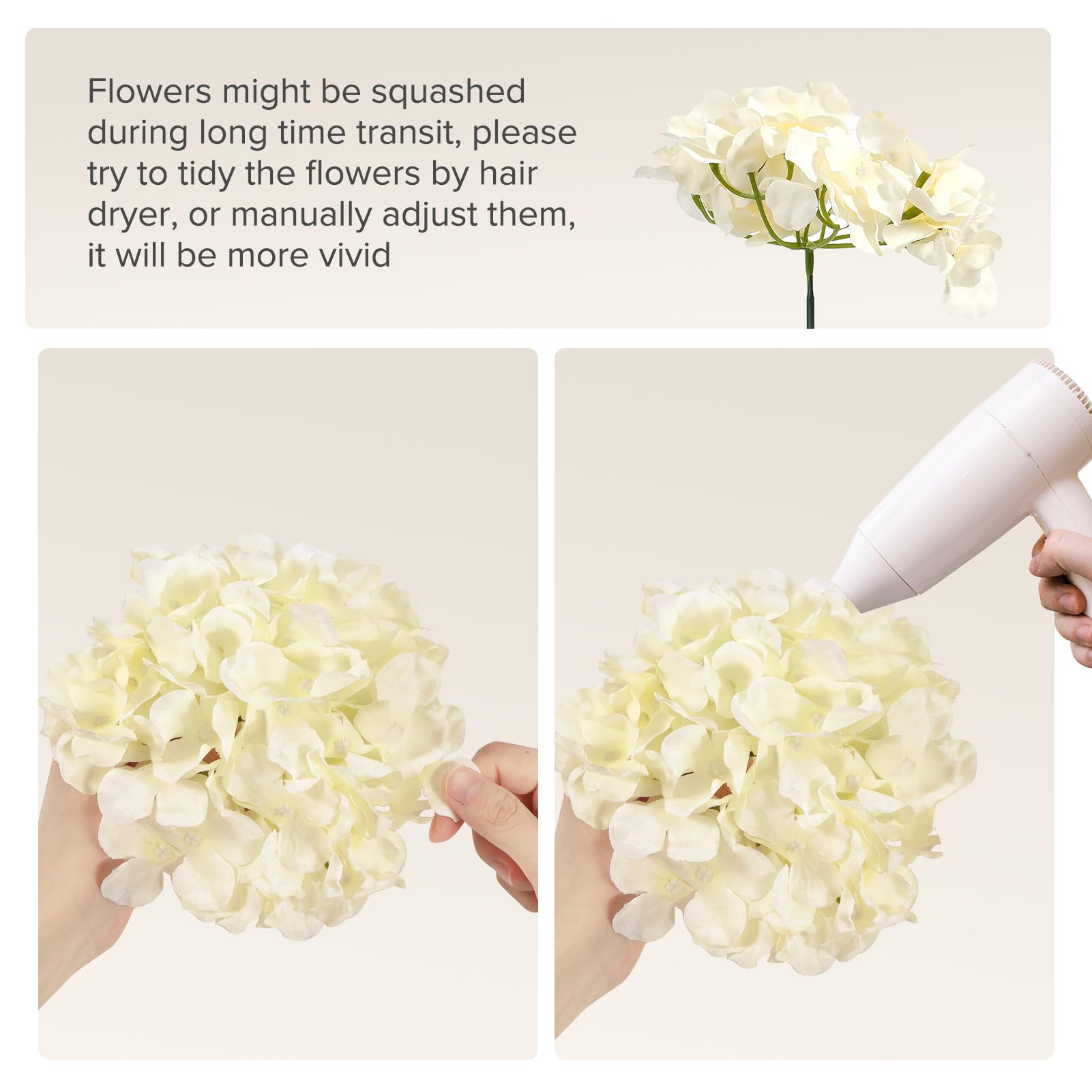 64PCS Champagne Hydrangea Flowers: You will get 64pcs champagne artificial flower heads and 64 pcs stems, like real flowers, persistent and reusable, can maintain colors and shapes for a long time. Enough quantity to create beautiful floral arrangements, bouquets or centerpieces