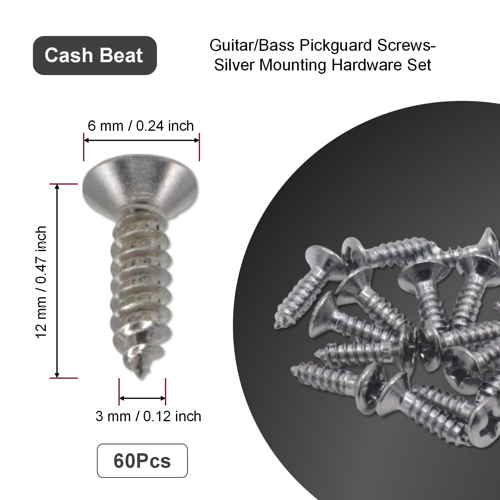 【Comprehensive Mounting Kit】CashBeat's guitar and bass pickguard screw set includes 60 stainless steel screws, providing a versatile solution for replacing or upgrading your instrument's control plate and pickguard hardware.