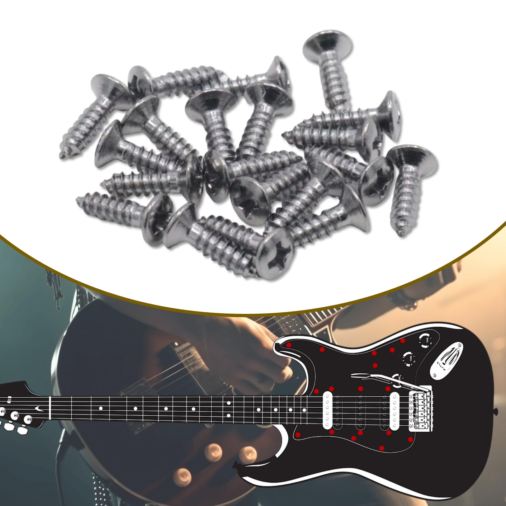 【Compatible with Popular Models】Designed to fit a wide range of electric guitars and basses, including Fender Stratocaster (Strat), Telecaster (Tele), Gibson Les Paul (LP), SG, and Squier (SQ) models, these pickguard screws are a must-have for musicians, luthiers, and guitar technicians.