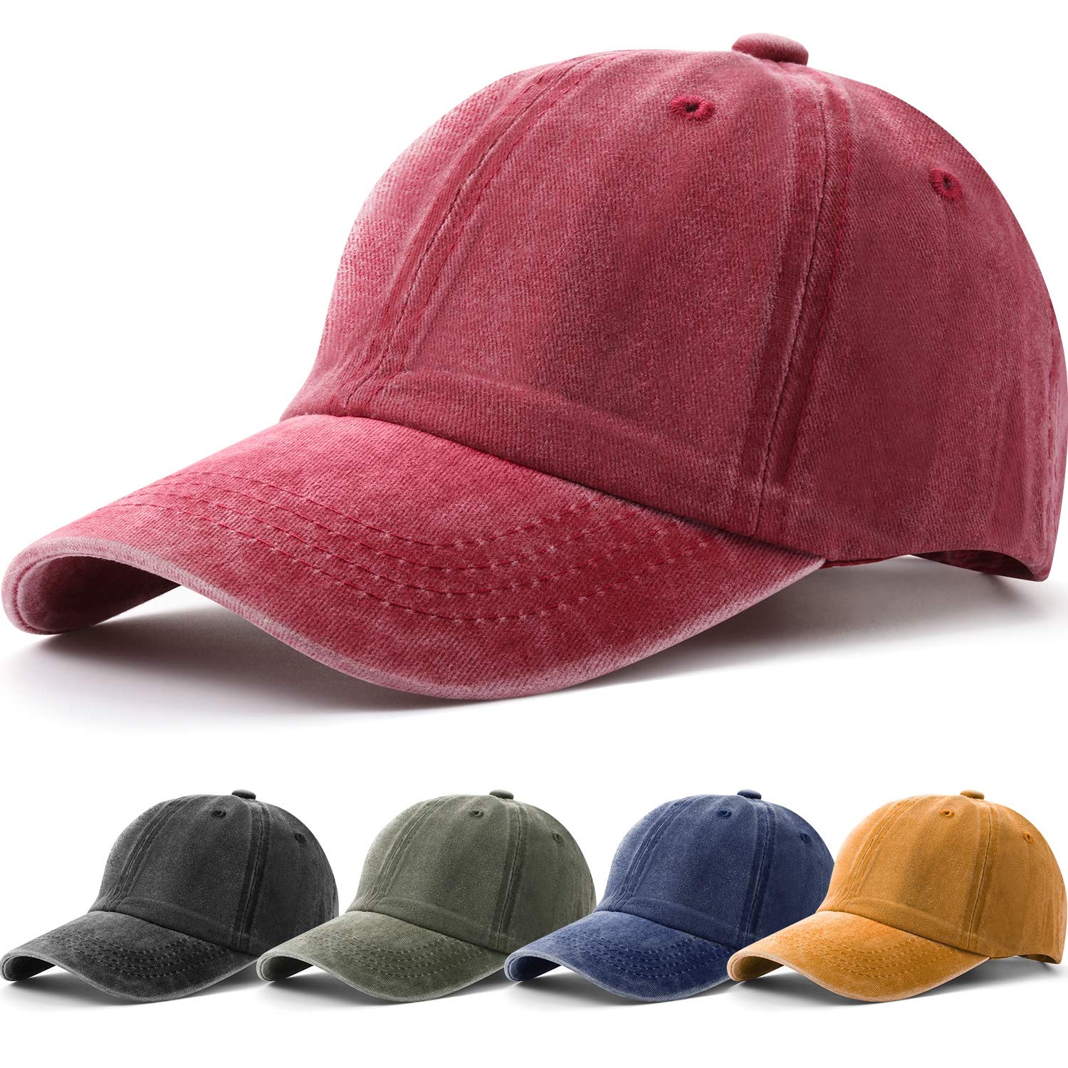 Description Unisex hat: Suitable for men or women, it's a gift for your family, friends and lovers in various festivals. Good design: It has a sweat band type lining to stop the sweat from dripping in your eyes when doing exercise. Stay shape: Washable and quickly dry. It is so wear resistant that will not lose it shape. Good for outdoor to wear: Nice for all seasons and provides shade while running quick errands, enjoying outdoor activities. Specifications: Material: cotton, polyester Color: as the picture shown Size: one size Package includes: 5 x Washed baseball cap