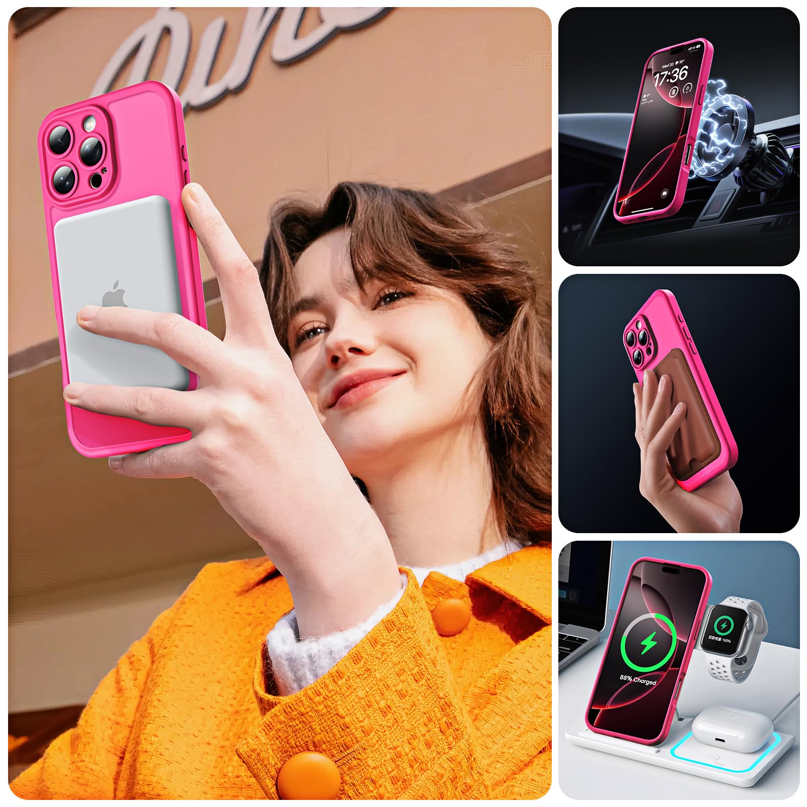 Embedded Magnets:Upgraded for iPhone 16 Pro Magnetic Case. Built-in magnets never falls off. 18N ultra-strong power, perfect for all your Mag accessories. It holds up well on your Mag car mount, even over strong bumps