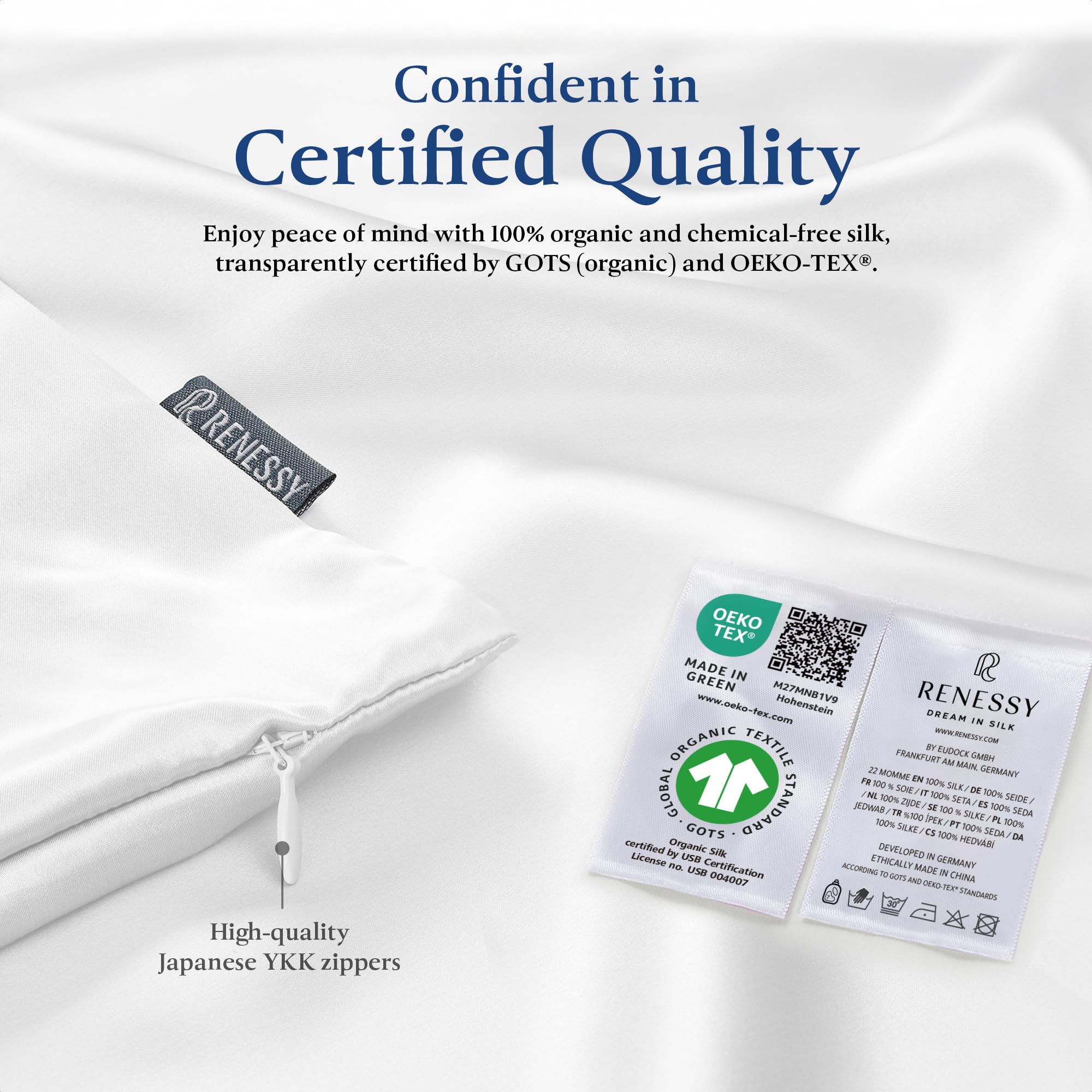 ✅ REAL 22 MOMME SILK | Did you know many silk products claiming to be 22 Momme aren’t? At RENESSY, our pillowcases are laboratory-tested to ensure they meet the true 22 Momme standard, so you enjoy the quality and durability you’re paying for.