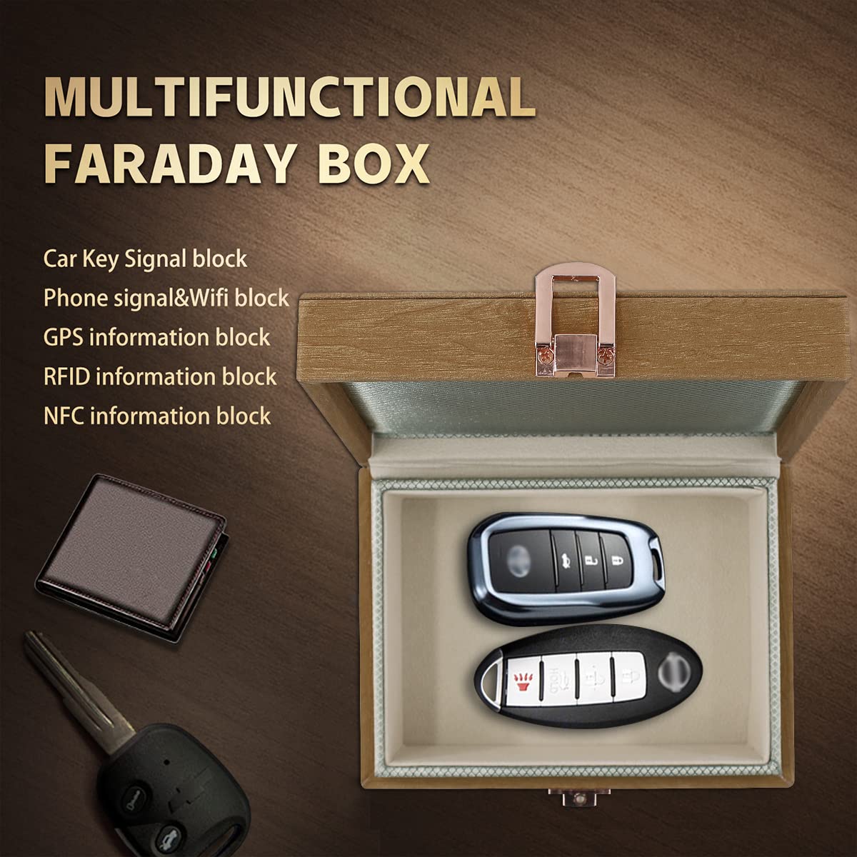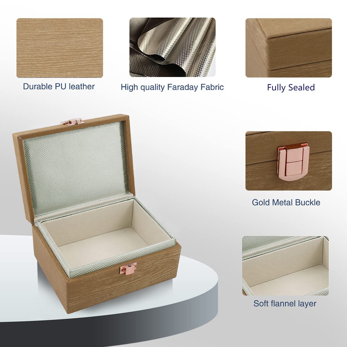 【High Quality Material】The exterior is made of high-quality PU leather, which is more durable than ordinary boxs. And imitation wood pattern makes it very luxurious. It also prevents water and dust from invading the inner side and protects the inner fabric. The inner layer is made of premium RF shielding fabric and covered with high-quality flocking layer. On the basis of protecting the shielding fabric, it can stably block the signal and improve the service life