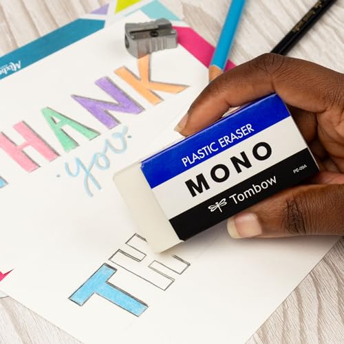 Soft plastic eraser removes marks cleanly with little pressure and no paper damage. Great for school or art. Protective paper sleeve with rounded corner edges keeps sleeve from tearing during use. Available in three sizes.