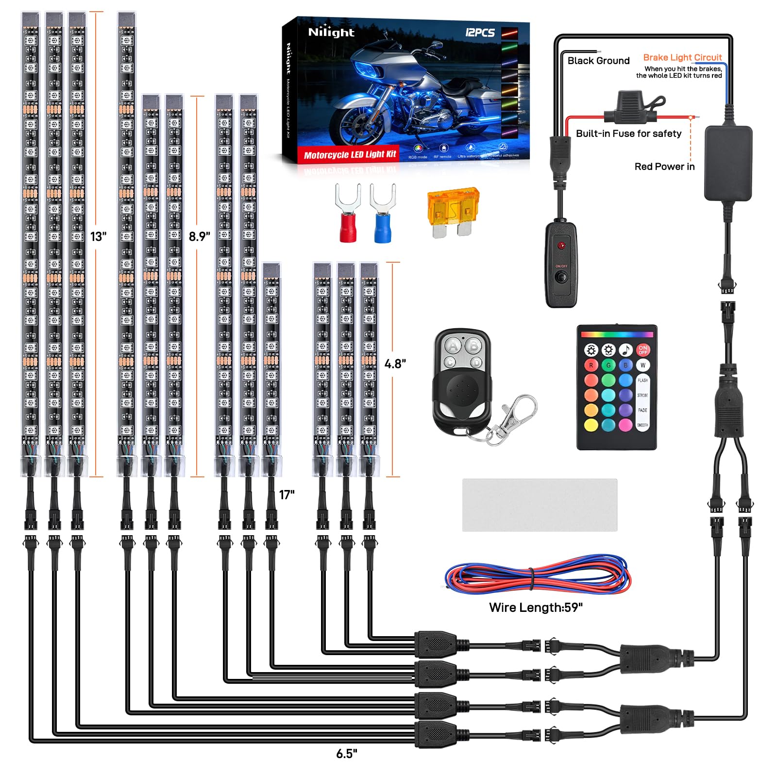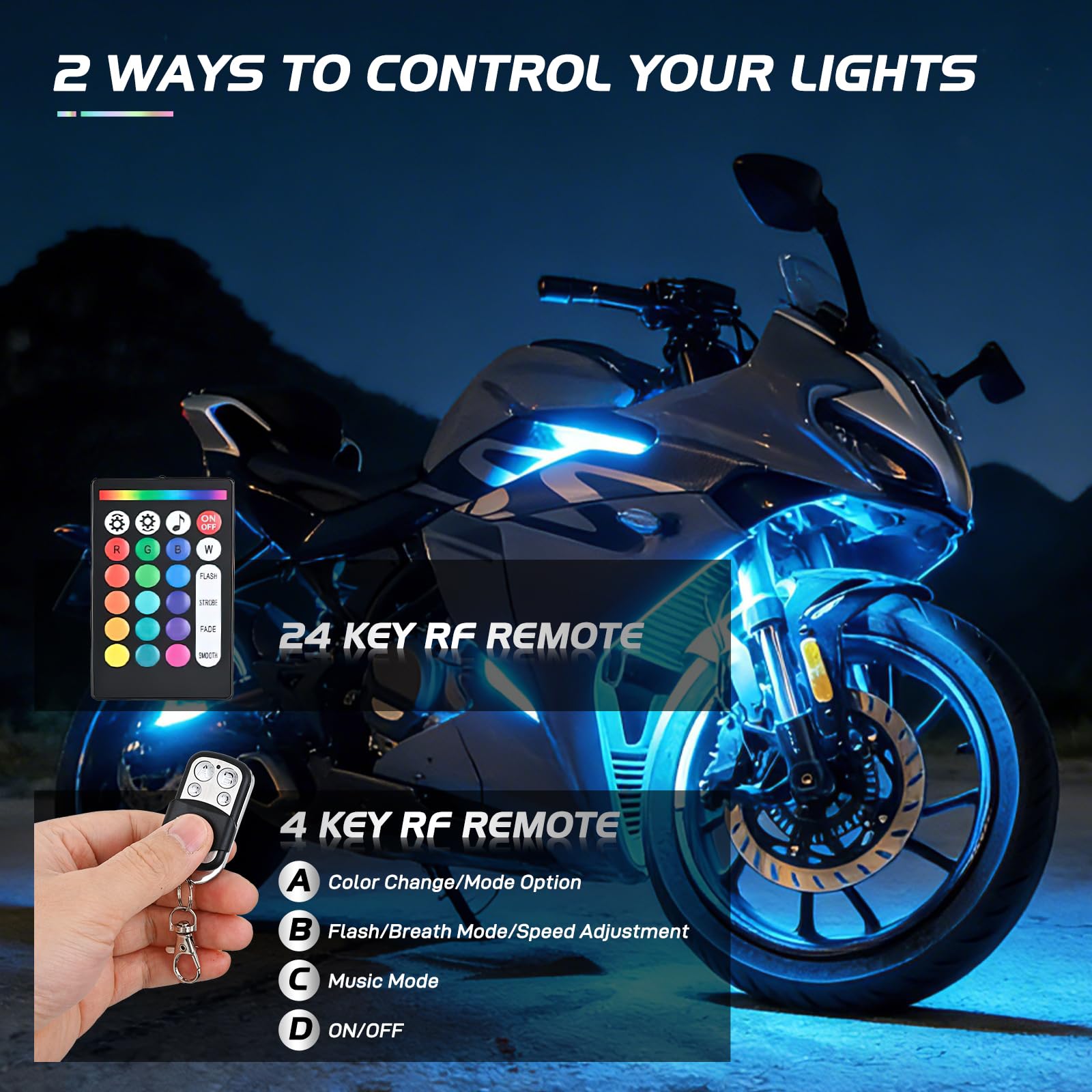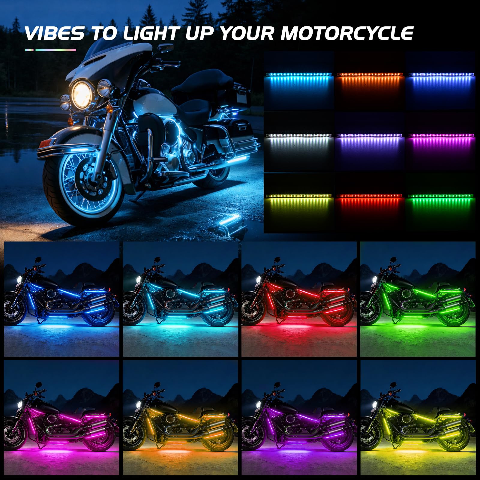 easy installation: each flexible led motorcycle lighting strip can be easily mounted using the adhesive tape on the back of each strip. bend each strip to desired position.