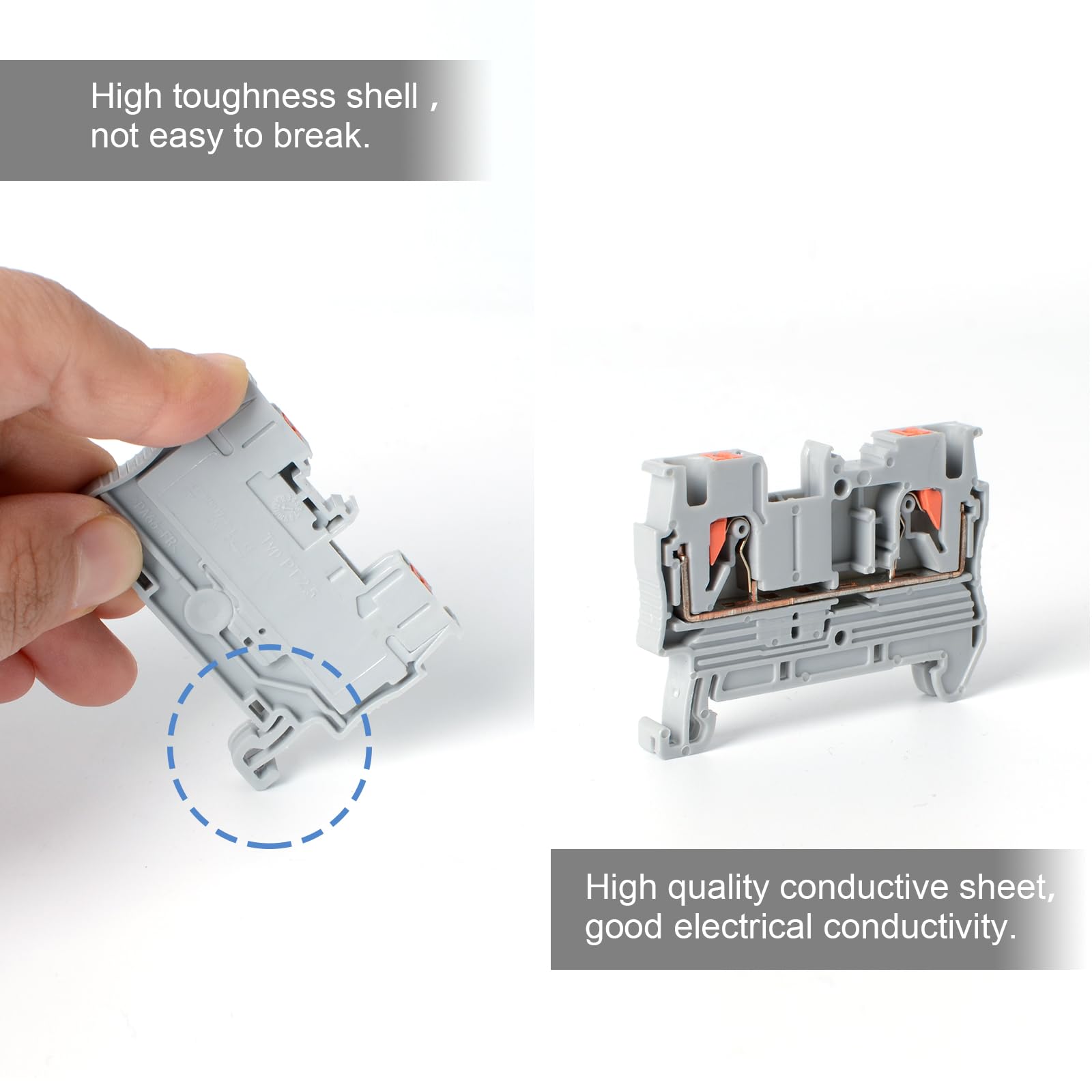 【High Quality Insulating PA66 Material】: This product is made of high temperature resistant and flame-retardant PA66 material. It has good electrical and mechanical properties, as well as the ability to withstand adverse weather conditions. All the live parts are installed in the insulating parts, and the operator's hands cannot touch the live parts after they are assembled into a row to ensure personal safety.
