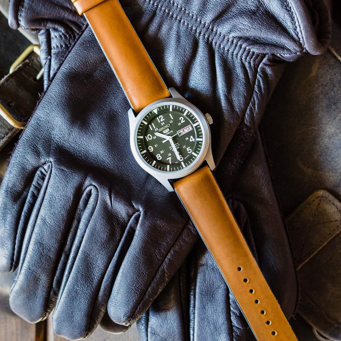 Our top-grain leather has been waxed, polished, and softened. This unique treatment allows the natural characteristics of the leather to shine through. Be aware that a natural patina will develop over time, giving this watch band a worn-in, timeless, and rustic feel. These simple imperfections add a rich texture to your timepiece!