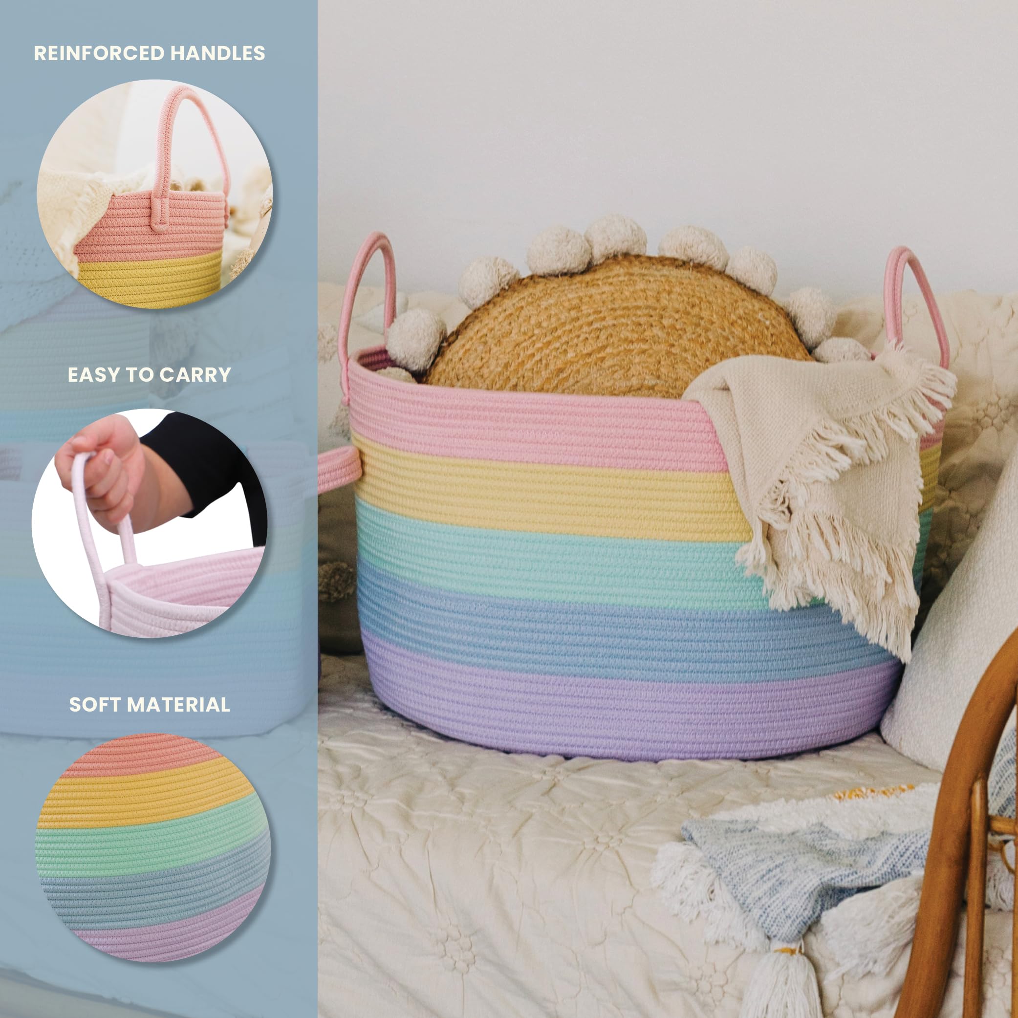 Transform Clutter into Joy – Bring color, warmth, and happiness into your home with this large storage basket, beautifully woven in rainbow tones that brighten any nursery, kids’ room, or playroom. Perfect as toy organizers and storage, a baby hamper, or a blanket holder that keeps your family spaces cozy and organized.