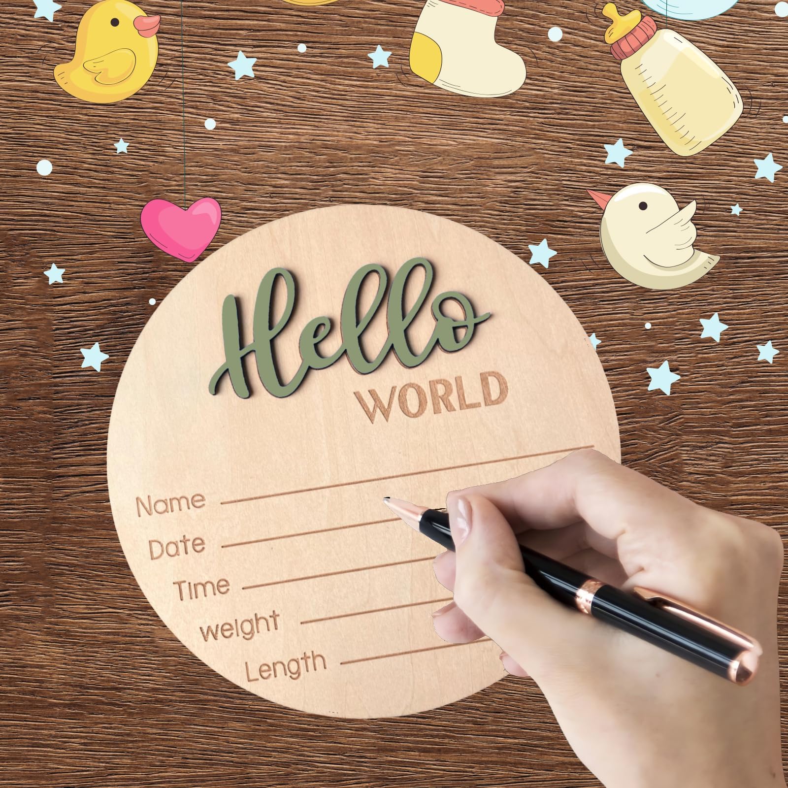 Unique and Personalized: The newborn sign featuring 3D letters "Hello" and engraved "World" along with your baby's birth statistics, making it a unique keepsake that celebrates your baby's arrival.