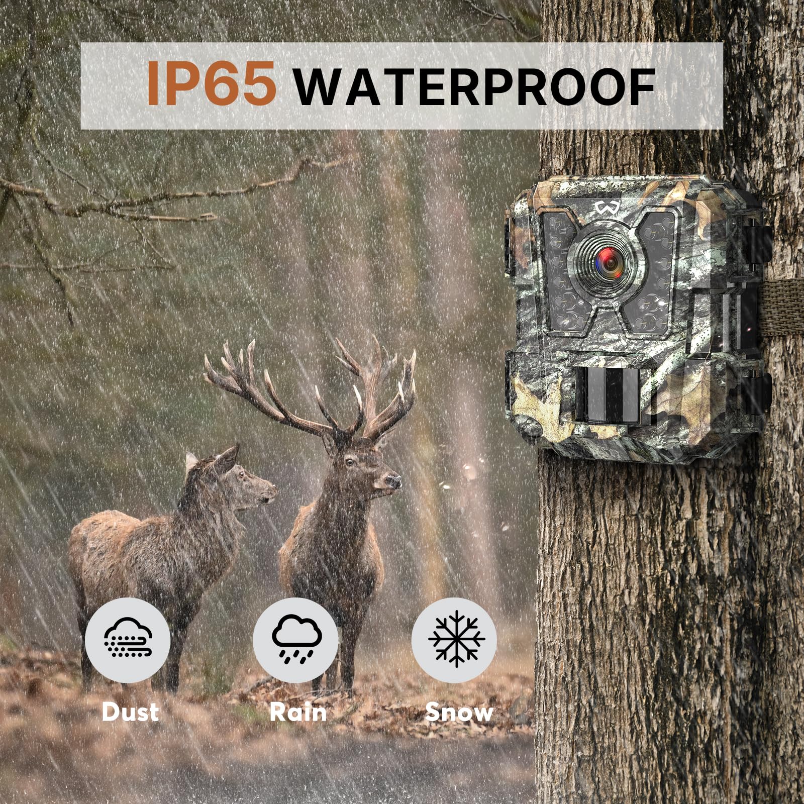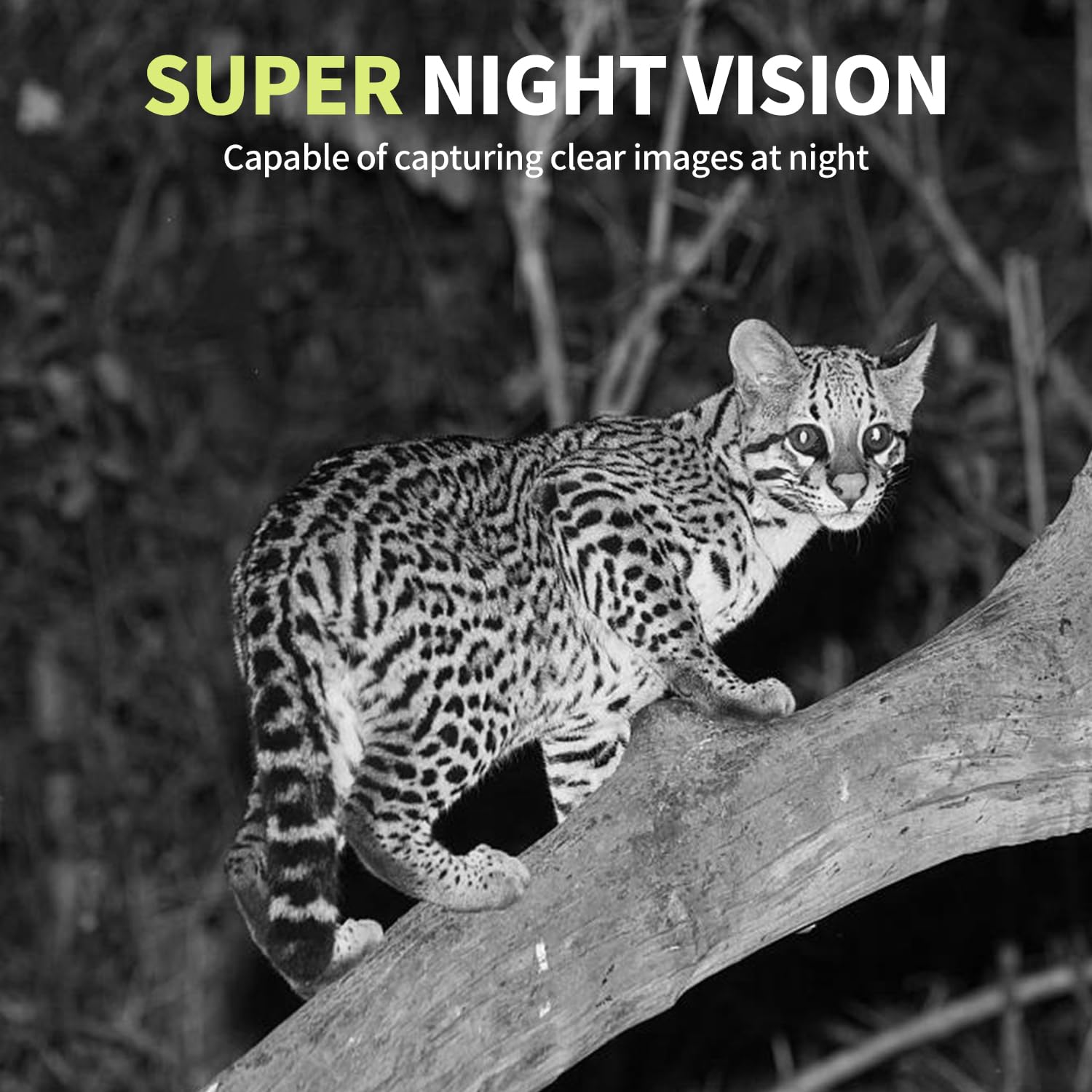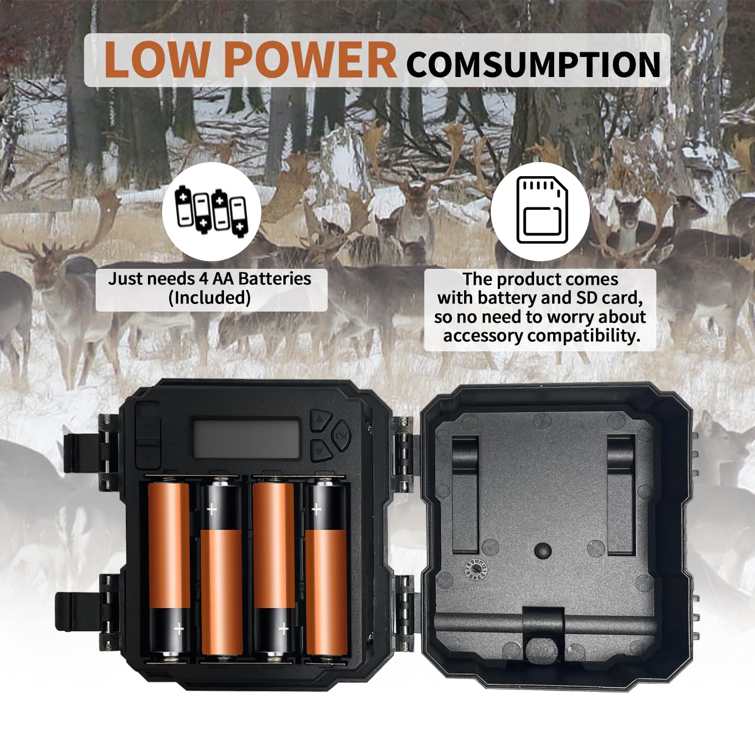 Low power consumption: The deer camera with night vision only need 4 AA batteries, with such a compact design, it boasts a sleek appearance and offers extended standby time under the same conditions, without the need for frequent battery replacements.