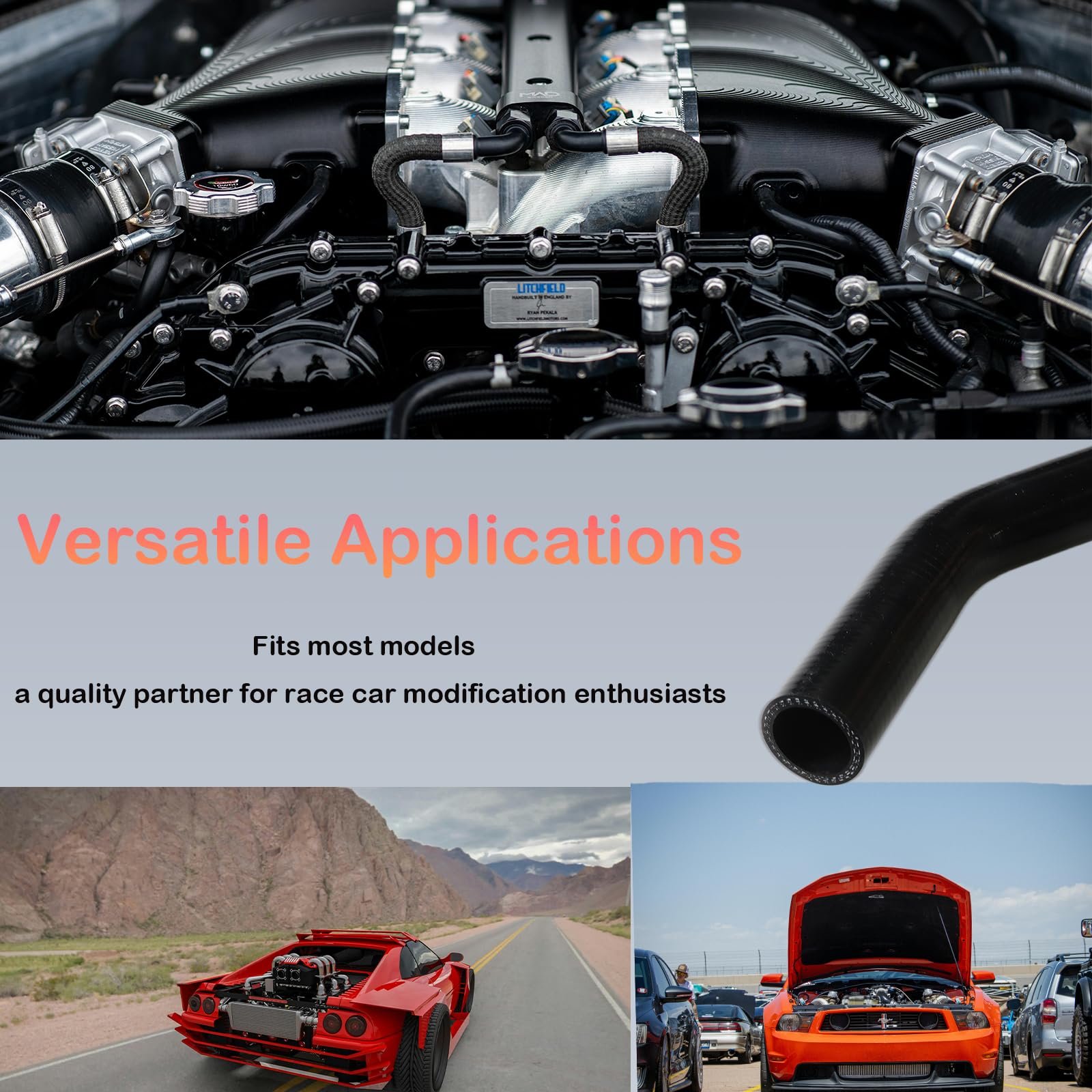 【Versatile Applications】Silicone tubing is Ideal for general-purpose air or water transportation in the engine bay, suitable for various automotive uses such as cooling systems, and other engine-related applications, making it perfect for professionals in industries such as racing vehicles, commercial trucks, buses, marine, agriculture, and manufacturing,but not for fuel, oil and coolant.