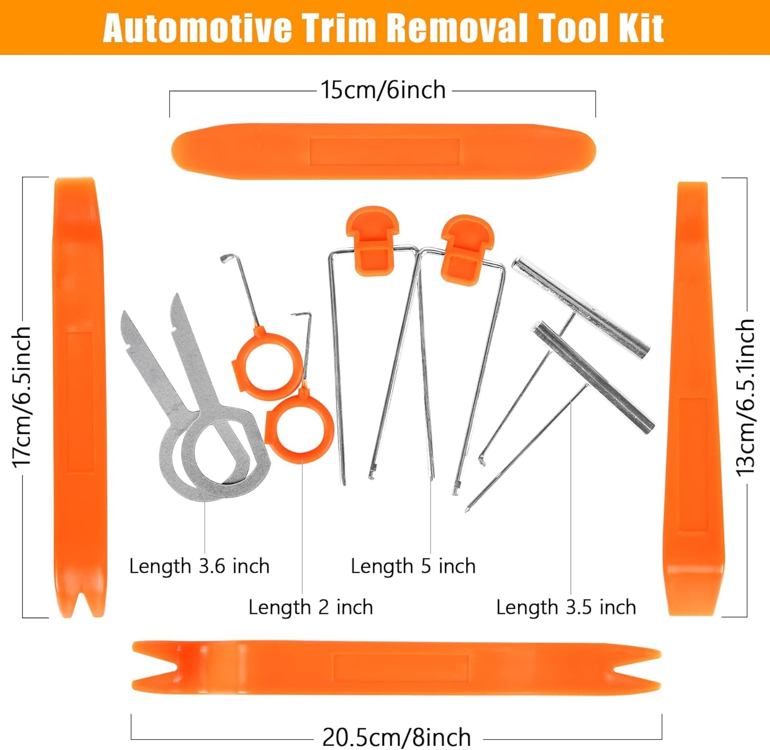 【Automotive Trim Removal Tool Kit】Ergonomic design makes them easy to hold in hand, anti-skid, easily and safely go into spaces and crevices, safe to remove fastener. Suitable for trimming car audio/radio, door panel, window, automotive interior repairing and furniture restoration
