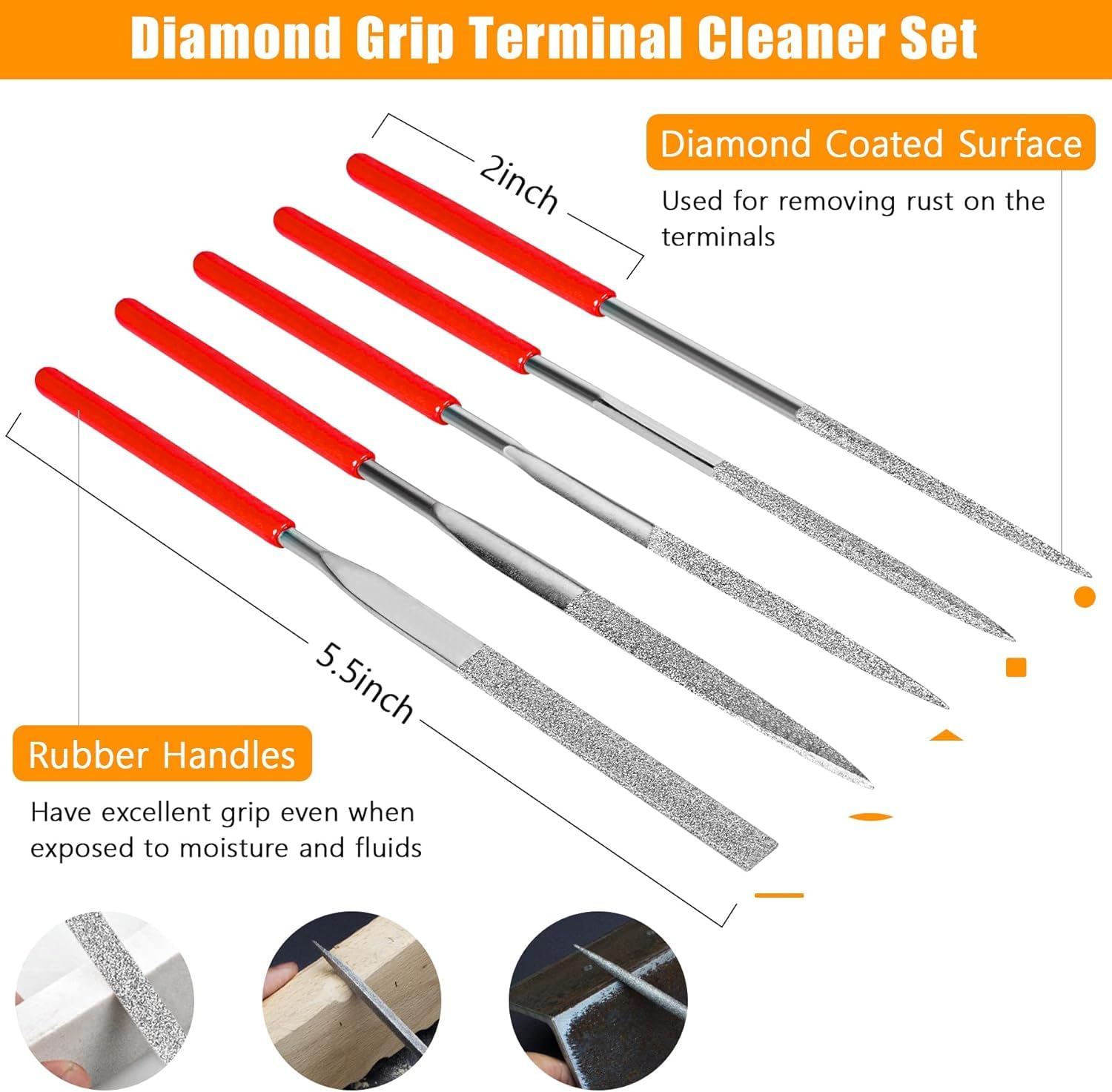 【Diamond Grip Terminal Cleaner】Diamond Grip Terminal Cleaner is sharp, high strength and wear resistance. Design to remove corrosion and extends harness life, cleans flat and casing shape terminals
