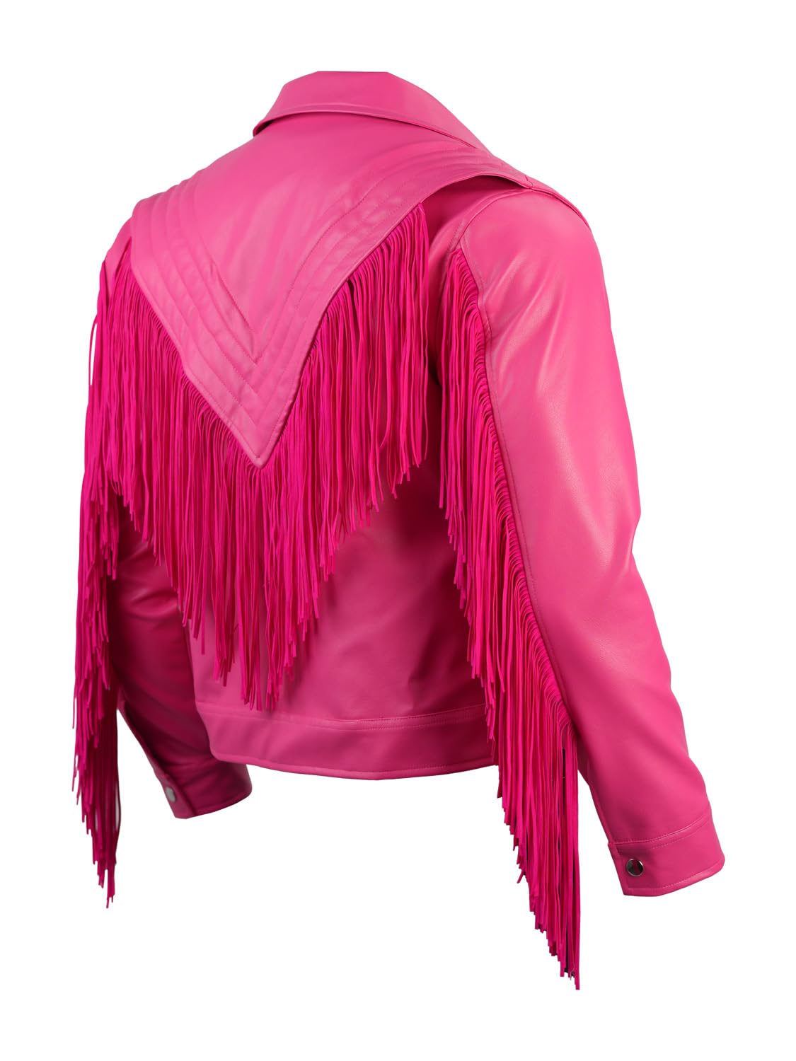 Distinctive Fringe Accents-Long tassels adorn the sleeves and back, adding dynamic movement and a unique flair reminiscent of classic biker aesthetics.