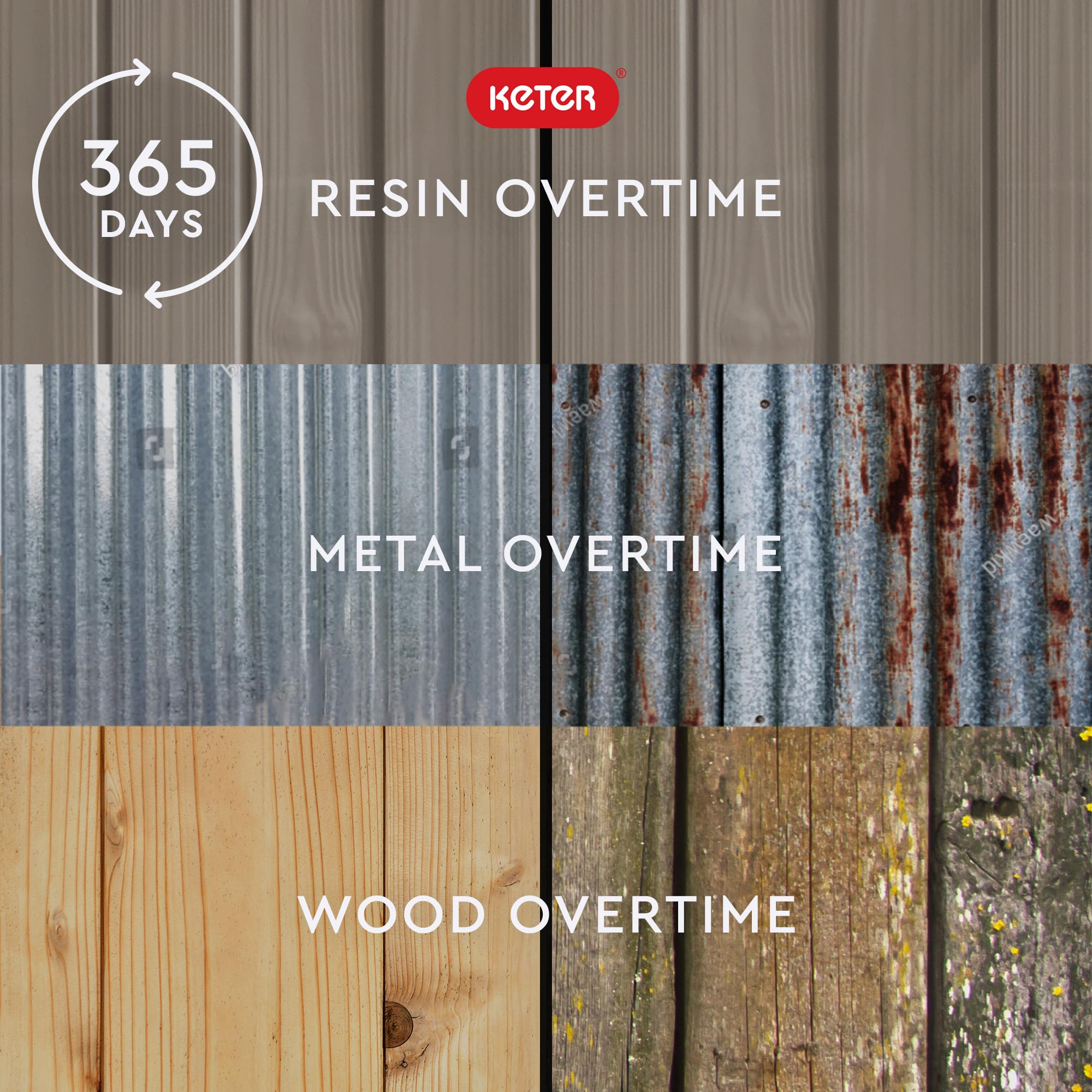 The Factor 6x3 resin shed from Kester provides the extra space you require at a price you can afford. The Factor 6x3 shed is easy to assemble and lasts far longer than wooden sheds because it won't rot, crack, or warp under the elements. With a Kester shed, you never have to worry about termites or other pests and the Factor shed is completely maintenance free. To clean an outdoor Kester storage shed, simply wipe it down with a damp cloth several times or lightly hose off the exterior. There's no need for expensive chemical cleaners. You can use the Factor 6x3 shed to store your rakes, shovels and other tools. The large double door opening makes storing your lawn mower an easy task while still having room for your other things. With a fixed window, skylight and extended roof line, this shed won't feel claustrophobic or dark and the air vents near the roof ensure that gasoline and other chemical fumes won't build up over time. Features: Stylish wood-like texture in neutral colors to complement any home Made from polypropylene resin plastic & steel reinforced to ensure durability Generous storage capacity: 113 cu. ft. Floor weight capacity: 30 PSF Roof Weight capacity: 15 PSF External dimensions: 70 in. W x 44. 5 in. D x 82 in. H Internal dimensions: 63. 78 in. W x 39. 17 in. D x 78. 74 in. H Skylight to let in natural light Vented for air circulation Lockable latch (lock not included) Wide double doors Sturdy floor panel Shelf brackets (shelf not included) Weather-resistant, waterproof and UV protected Will not peel, rot or rust Never needs painting