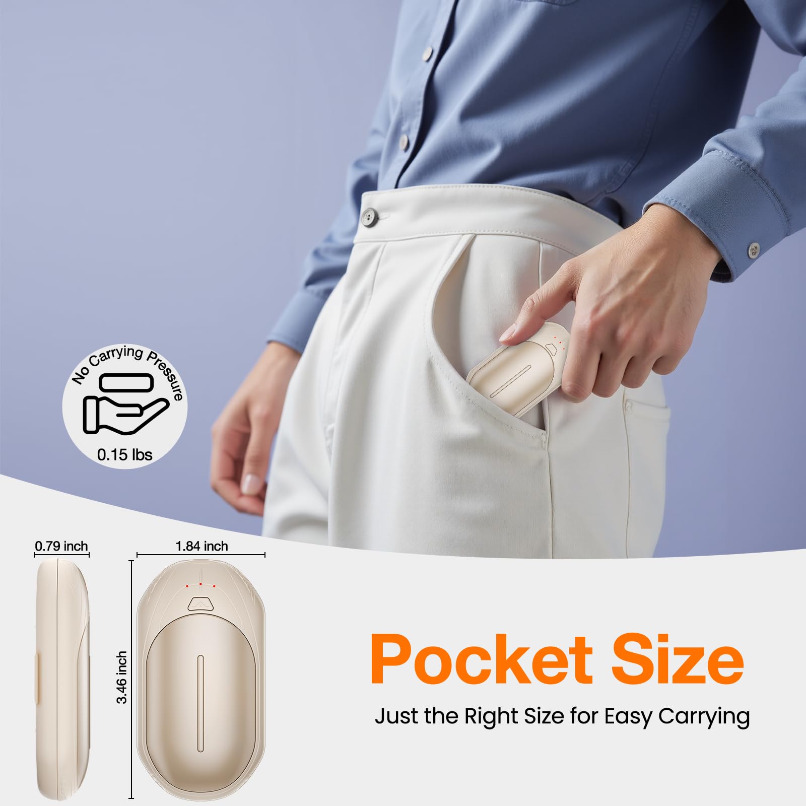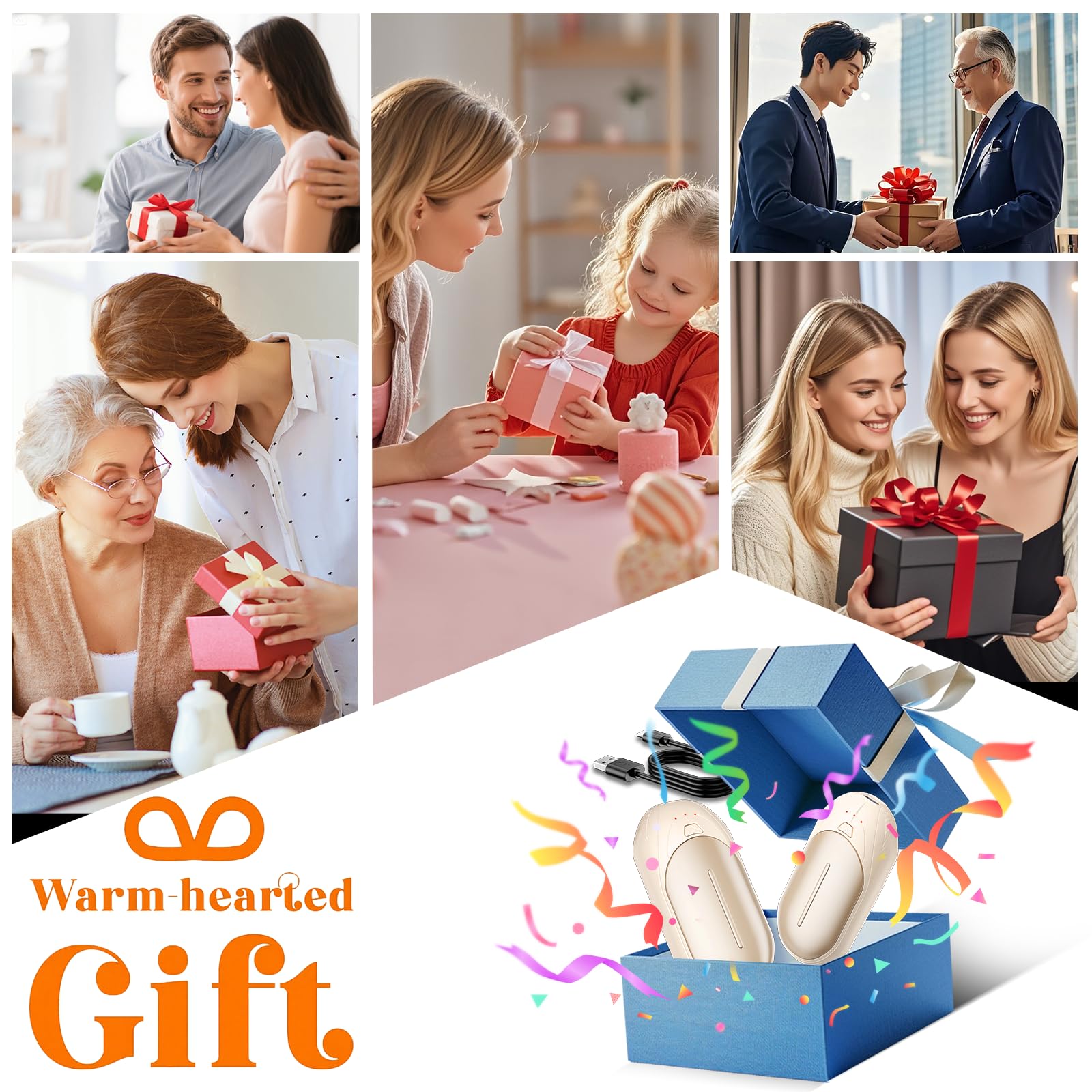 AI Hand Warmers Rechargeable 2 Pack, AI Smart Chips 6000mAh Electric Hand Warmers, 20Hrs Long Safe Heat, Portable Pocket Heater, Gifts for Christmas, Outdoor, Golf, Hunting, Camping -Champagne