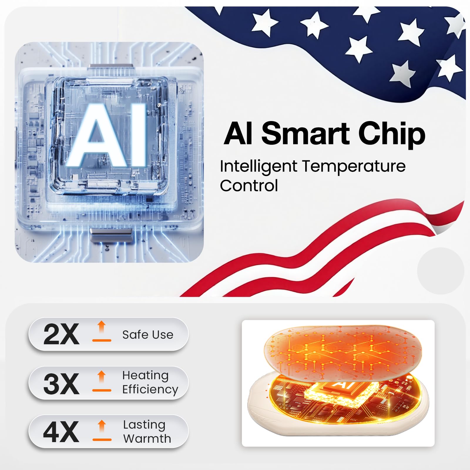 Smart AI Temperature Control: Equipped with an advanced AI-powered temperature sensor chip, these rechargeable hand warmers intelligently detect and maintain your optimal comfort level. Choose from 3 precise heat settings (up to 130℉), and enjoy consistent warmth with built-in safety protection, preventing overheating or overcooling during extended use.