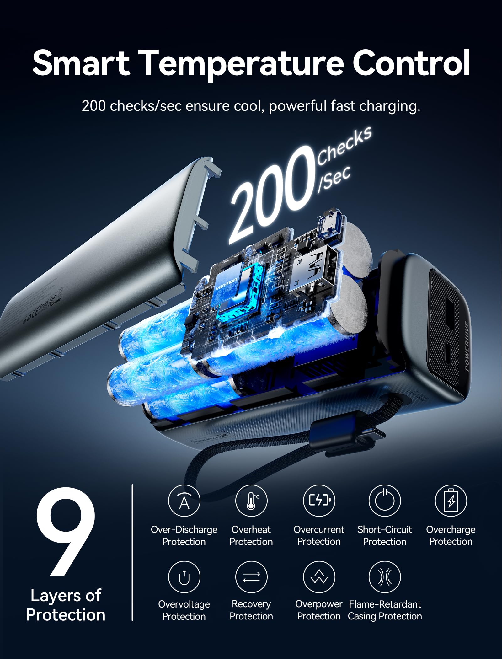 Built-In Cables for On-the-Go Use:Includes two USB-C cables: one functions as a reinforced carrying strap, rigorously tested to endure over 20,000 bends beyond 60 degrees while supporting 2kg weight; the other delivers 240W high-speed charging for powerful, rapid power delivery anywhere.