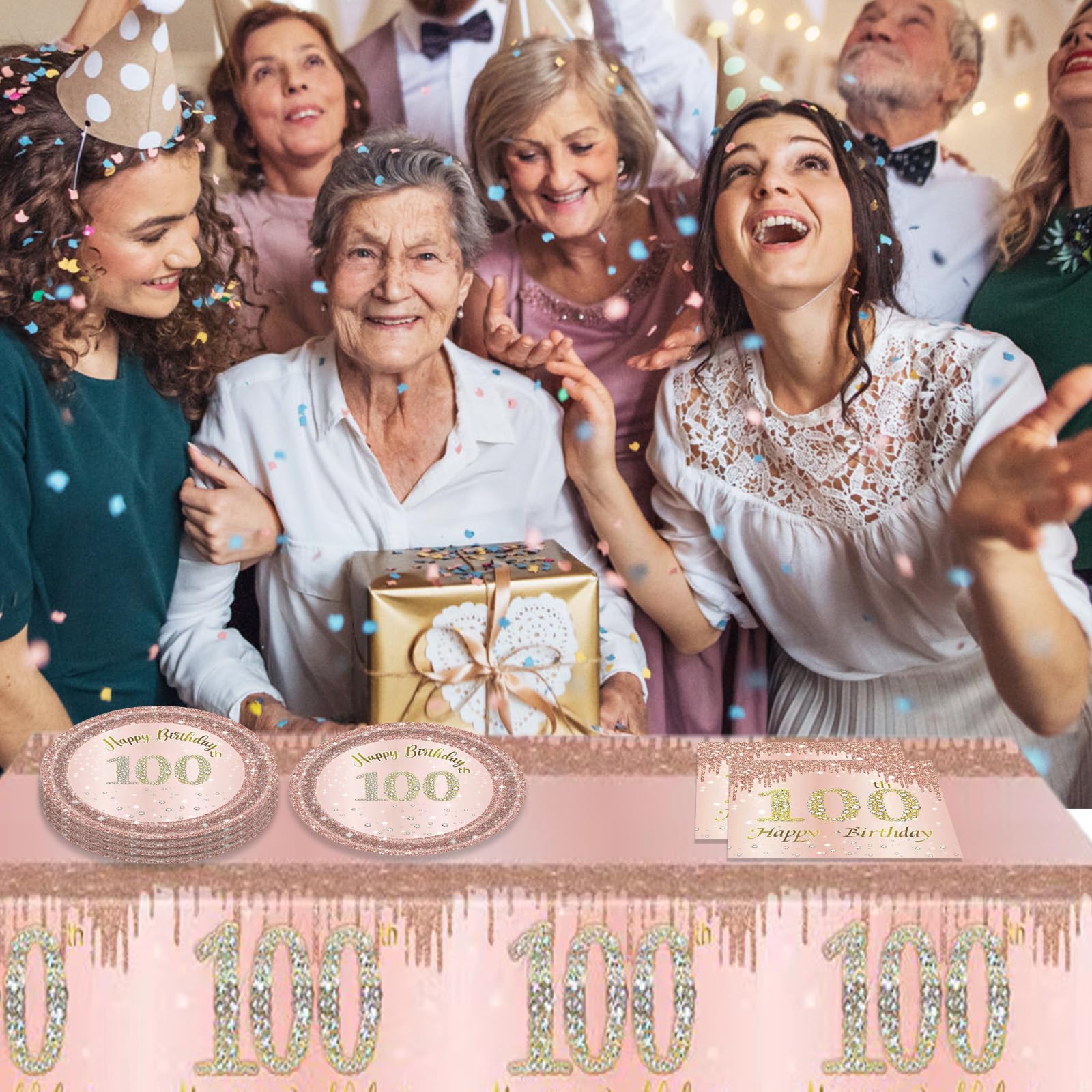 【SWEET 100th BIRTHDAY PLATES FOR WOMEN】The vintage 1925 disposable dinnerware comes with 7" paper dessert plates *20, 6.5" napkins (3 layers) *20 and tablecover *1. The durable dinnerware set allows you to serve 20 guests at one time