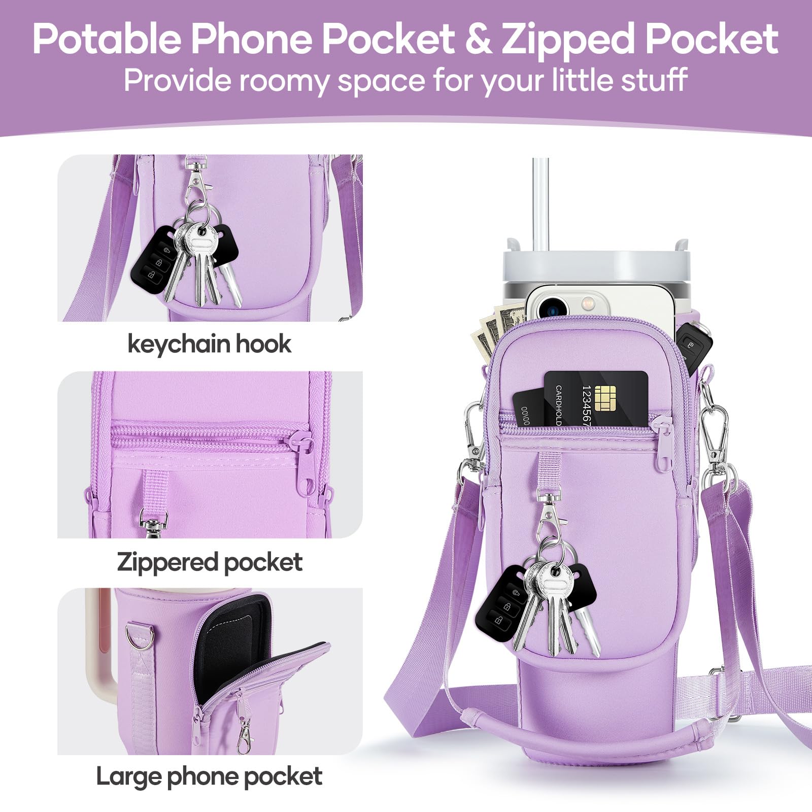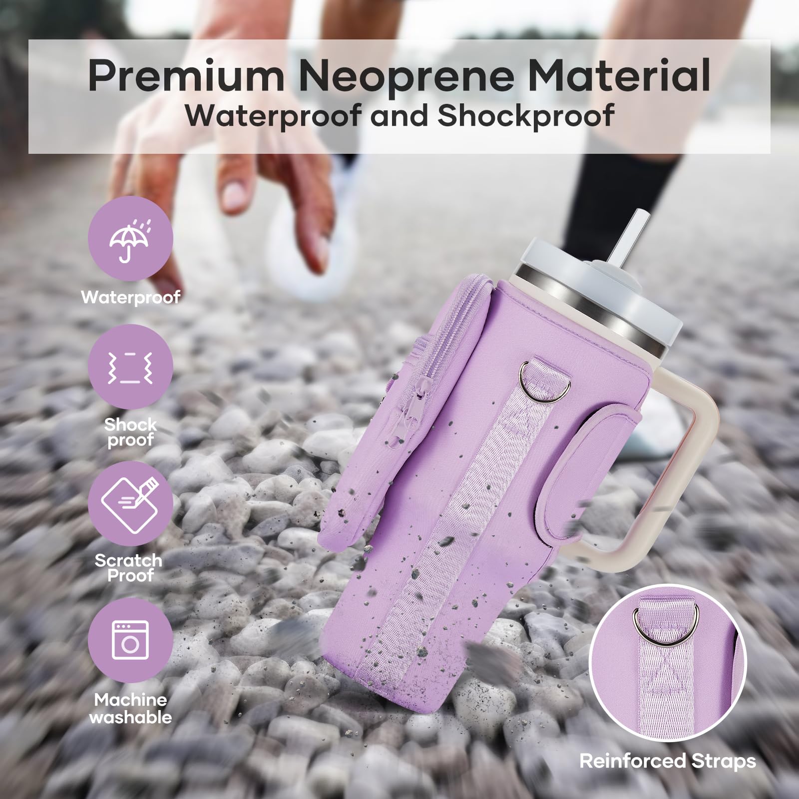 Accessories for Stanley Cup: This water bottle holder with strap is specially designed for Stanley Quencher H2.0 40/30oz and Stanley Adventure Quencher 40/30oz, Stanley Quencher ProTour 40/30oz,this Carrier bag with strap fits your Stanley dupe like a glove, could free your hands, offering superior protection against drops and silence when setting down.