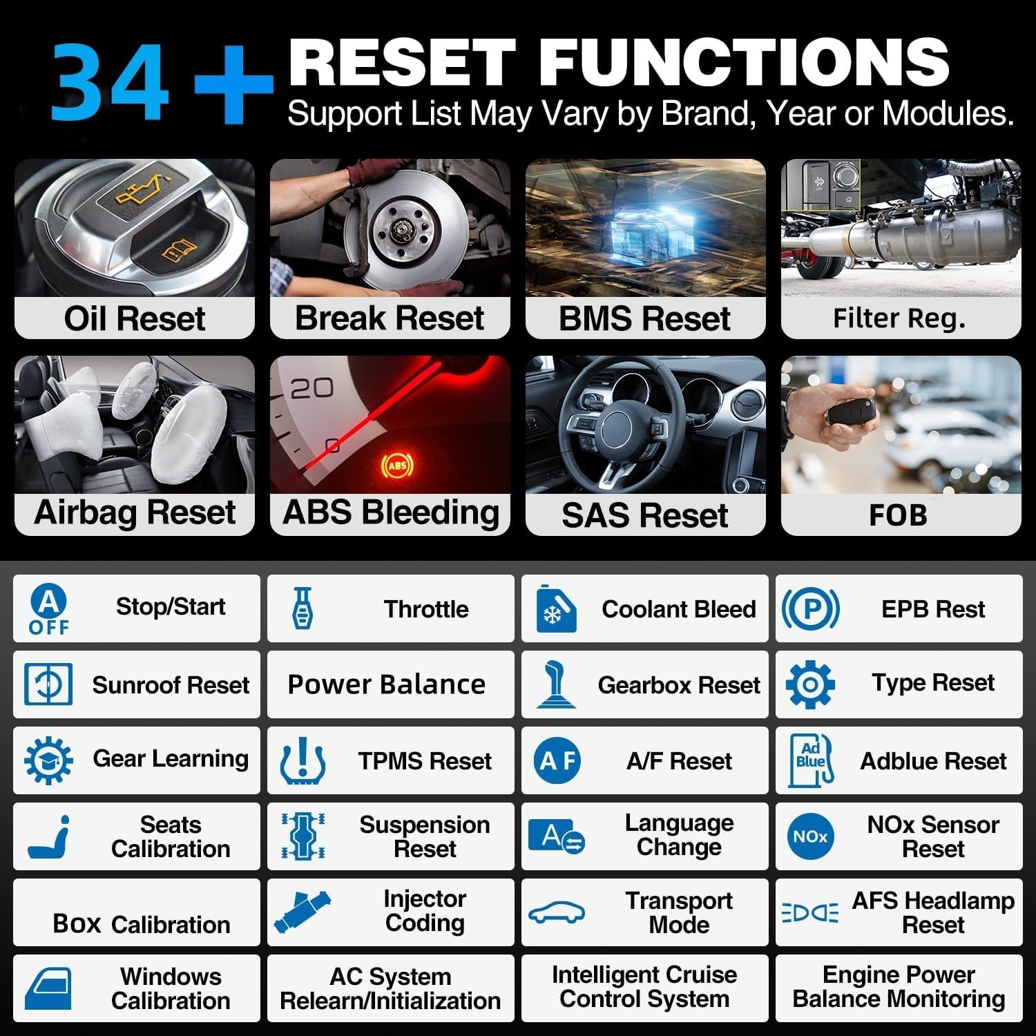 The device covers diagnostic and reset functions while also graphing detailed parameters for live data on FULL systems including Gear/SAS/DPF/EPB/TPMS/BMS/ETS/Oil/Brake/AFS/GEARBOX/SUNROOF/SUS Reset, ABS Bleeding, Injector coding, and more function can be found in car make software. Additionally, this tool can detect hidden issues for full automotive systems.