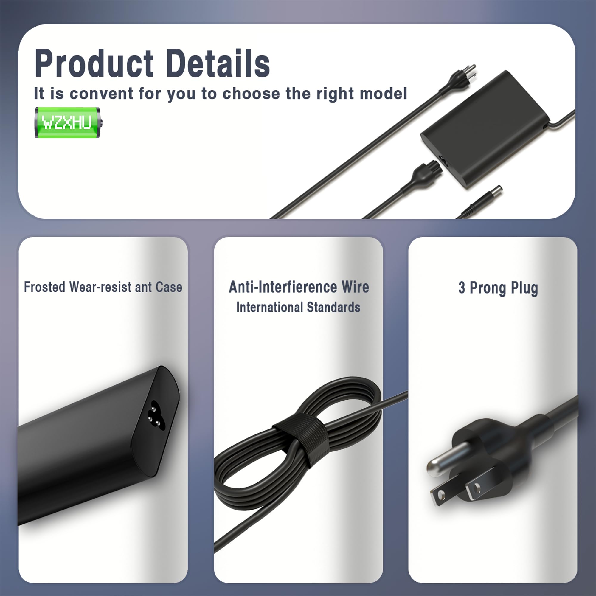WZXHU 65watt Power Cord Compatible with dell E5250 E5400 E5410 E5420 E5430 E5440 E5450 E5470 E5530 E5540 E5550 E5570 E6220 E6230 E6320 E6330 E6400 E6410 E6420 E6430 E6430ATG E6440 E6500 E6510 E6520 E6530 E6540 E4200 E4300 E4310 E7240 E7250 E7440 E7470