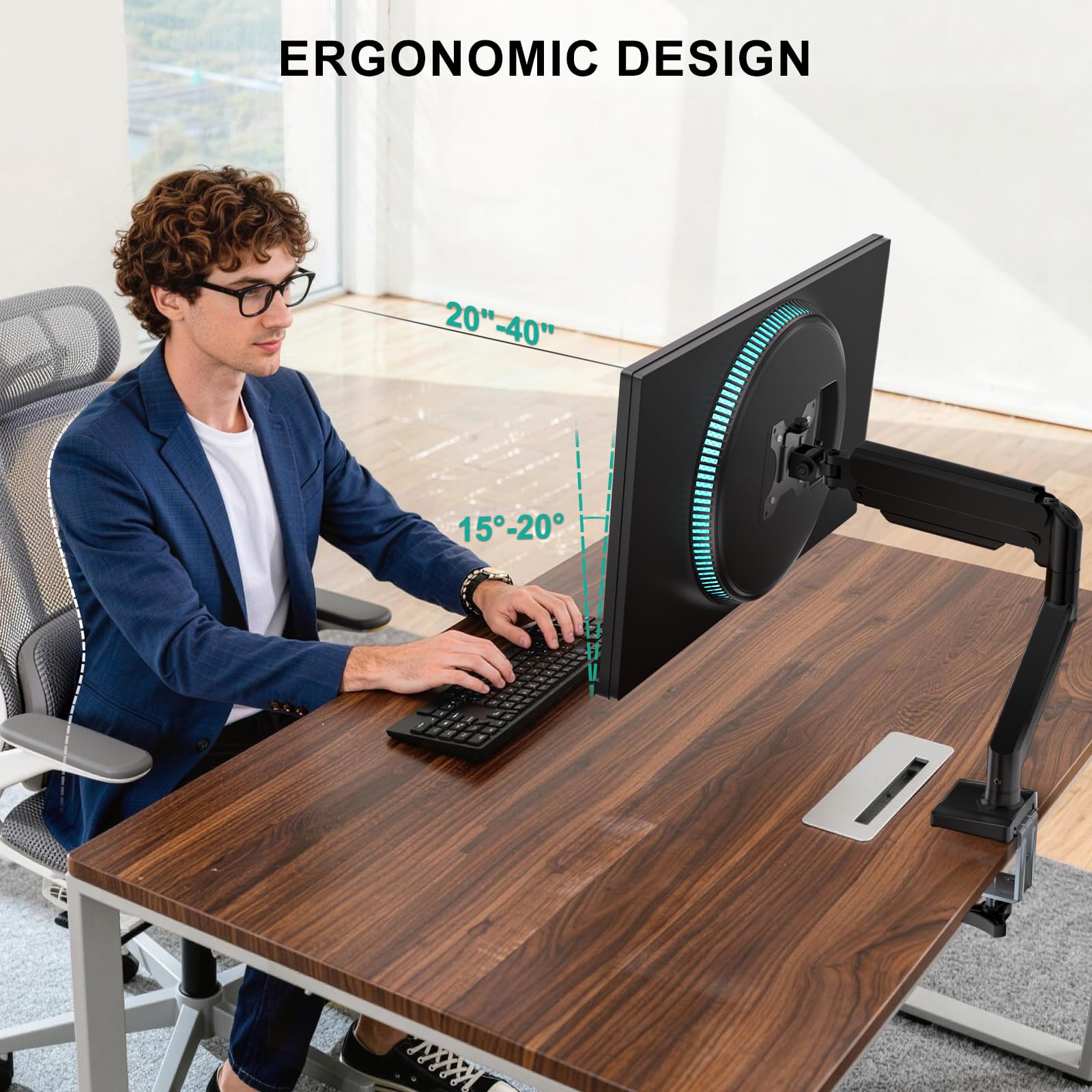 Ergonomic Viewing Comfort: WALI single monitor mount allows you to extend your screen out by 19.3" and raise the arm up to 17.3" above the desktop by adjusting settings, allowing optimal screen positioning for reduced neck, eye and back strain
