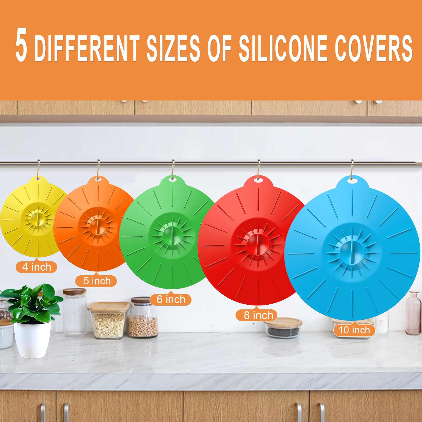 【Easy and Fun to Use】:Simply Place Lid on Pots, Pans, Bowls, Plates, Cups, Jars and Other Containers and Gently Press for an Airtight, Leak-Proof Suction Seal. Gently Lift Edge or Slide off to Release Seal.