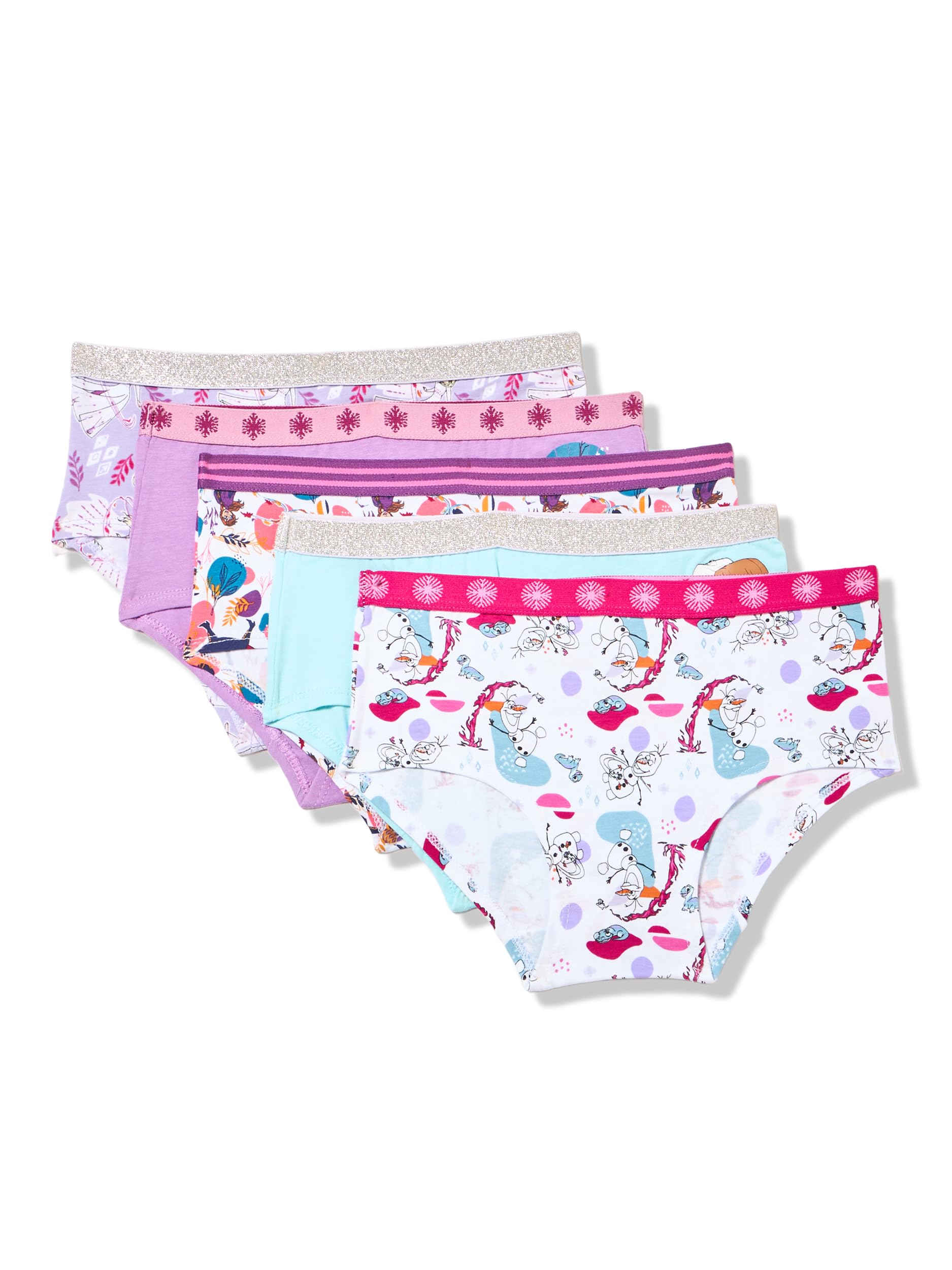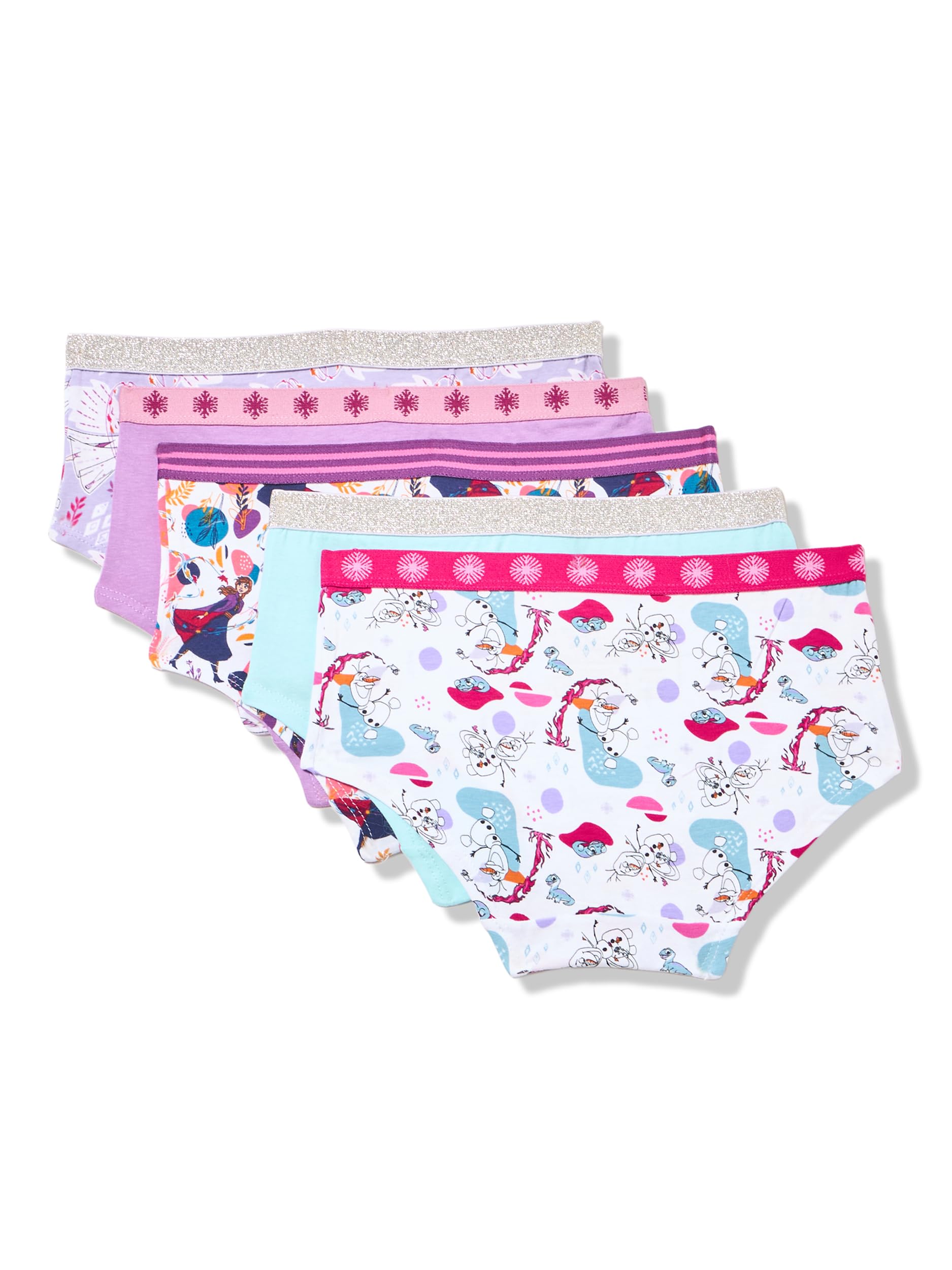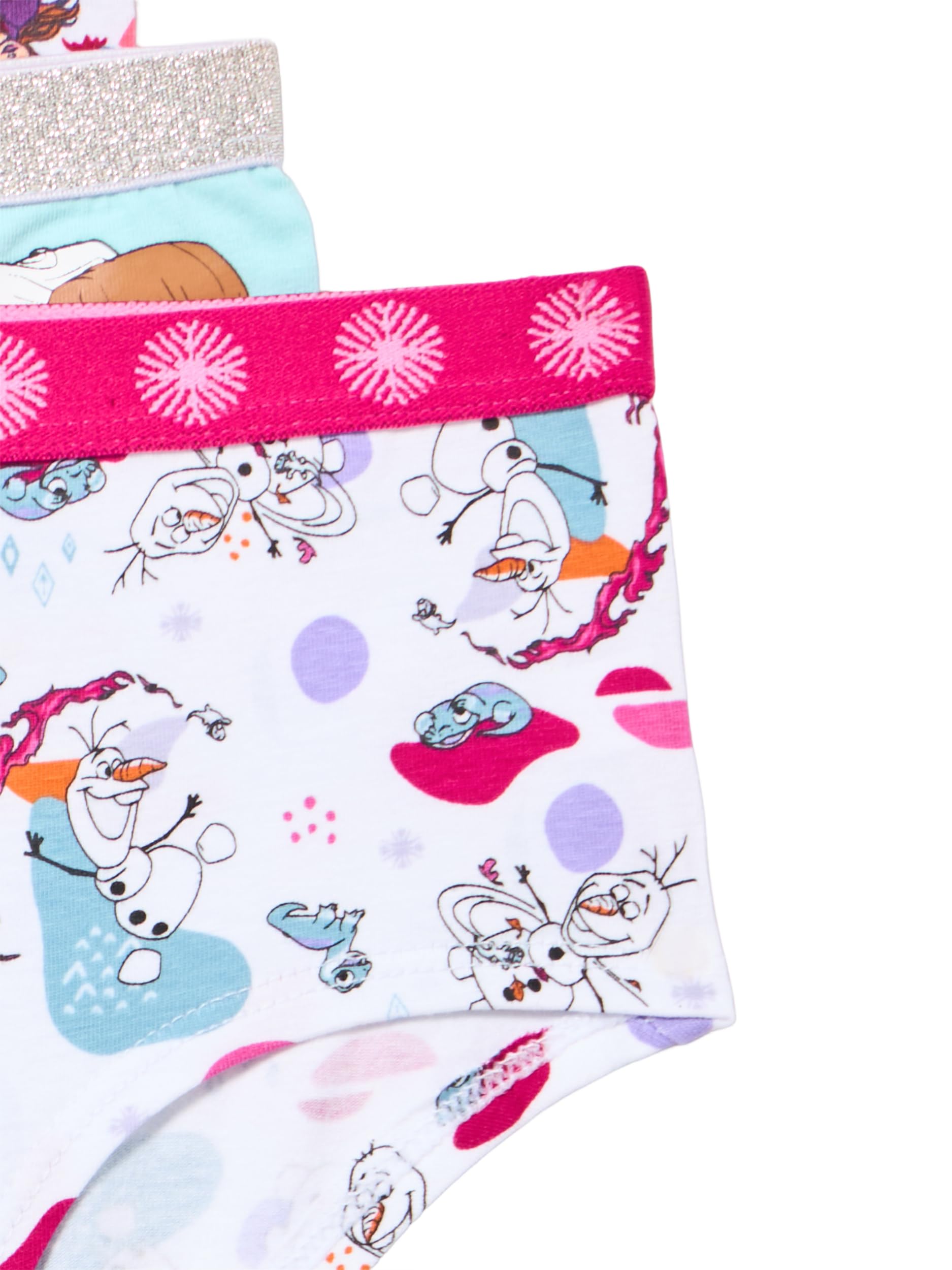 Description Let her step into a world of magic, sisterhood, and snowflakes with the Frozen Girls’ Underwear Collection, designed to wrap little dreamers in comfort and enchantment. This assortment includes 100% combed cotton panties, cotton blend panties and super-soft poly blend girl shorts with a breathable cotton gusset, providing the ideal fit for everyday play or royal occasions. Each pair is tagless and finished with a gentle brushed waistband, perfect for sensitive skin and long days of imagination. With prints starring Elsa’s icy elegance, Anna’s brave heart, and Olaf’s sunny spirit, these underwear capture the wonder of Disney’s Frozen while helping your little one feel secure and stylish. Whether she’s building snowmen, heading to preschool, or playing make-believe, this underwear collection is a magical must-have. Available in sizes 2/3T to 10, it’s comfort fit for a queen in training.