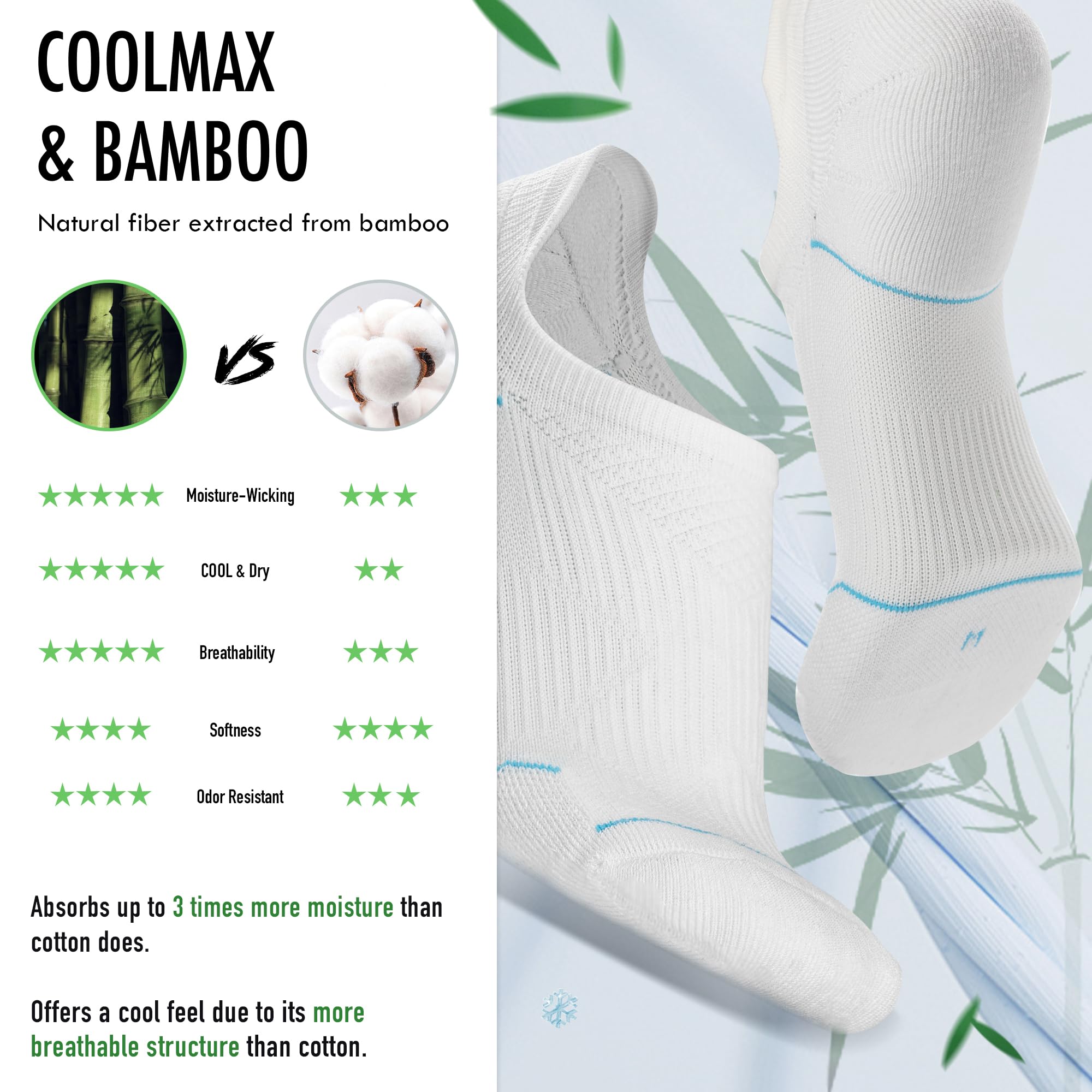 Premium CoolMax fiber - Brisira no show socks men meticulously crafted using high-quality Coolmax materials, known for their exceptional softness, breathability, and durability. Brisira mens socks are ideal for daily work, running, cycling and other sports.