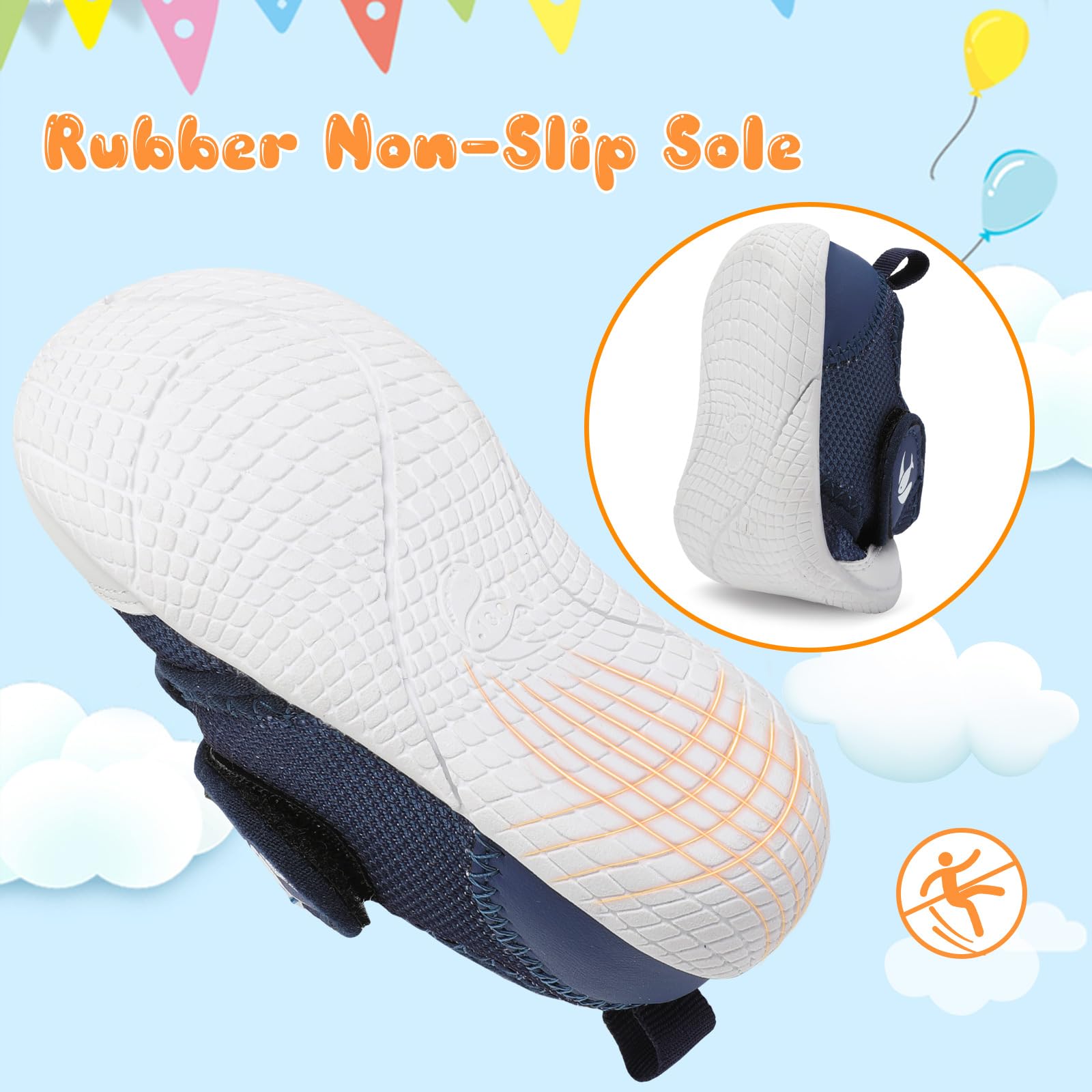 Sole: The rubber sole has more elastic and excellent anti-collision performance. Safe baby sports shoes, with soft rubber soles with anti slip points, can make your baby not slip easily when crawling or walking.