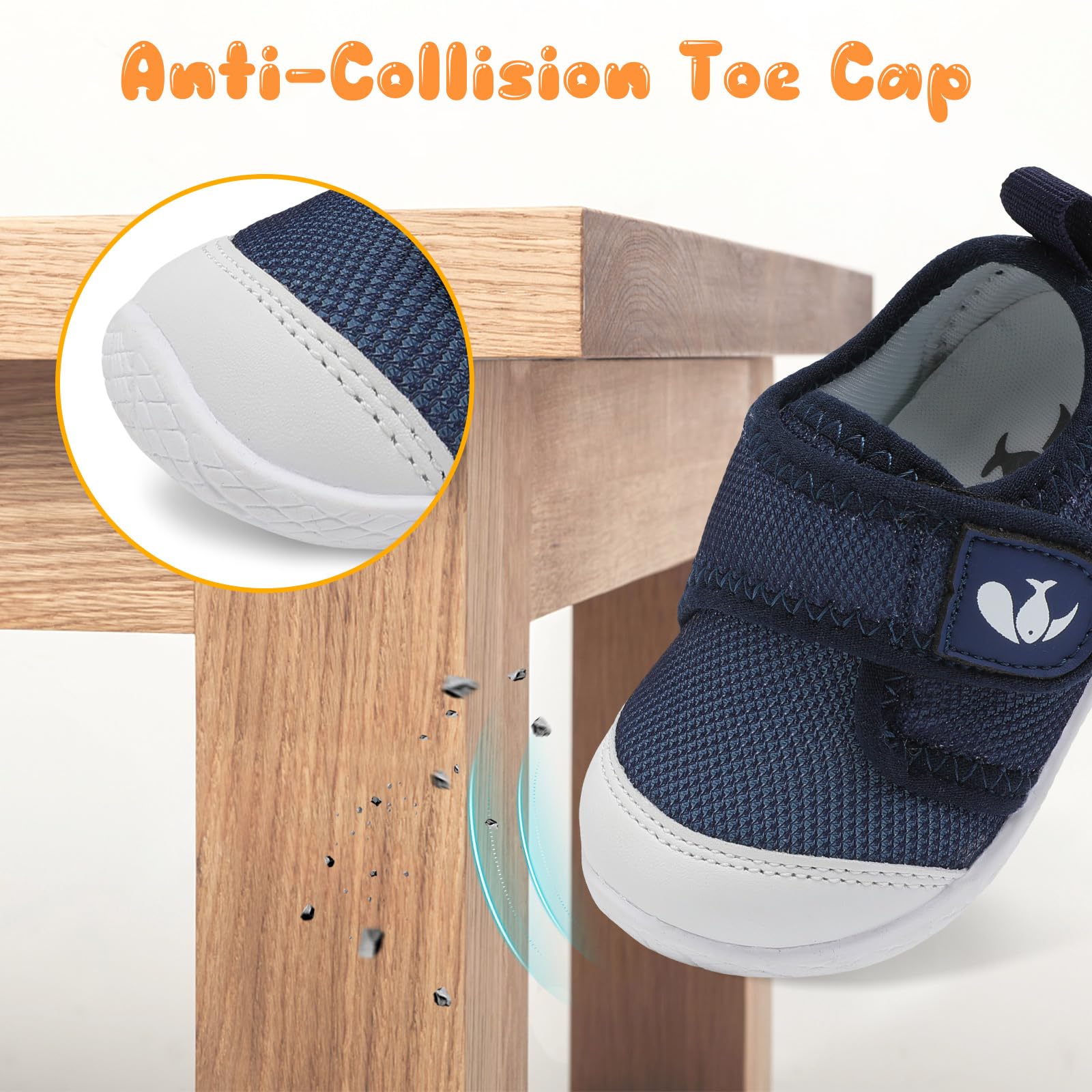 Walking Confidently: Round toe boxes allow natural splaying of toes for balanced landing and maximum comfort, your baby will walk very confident with them.