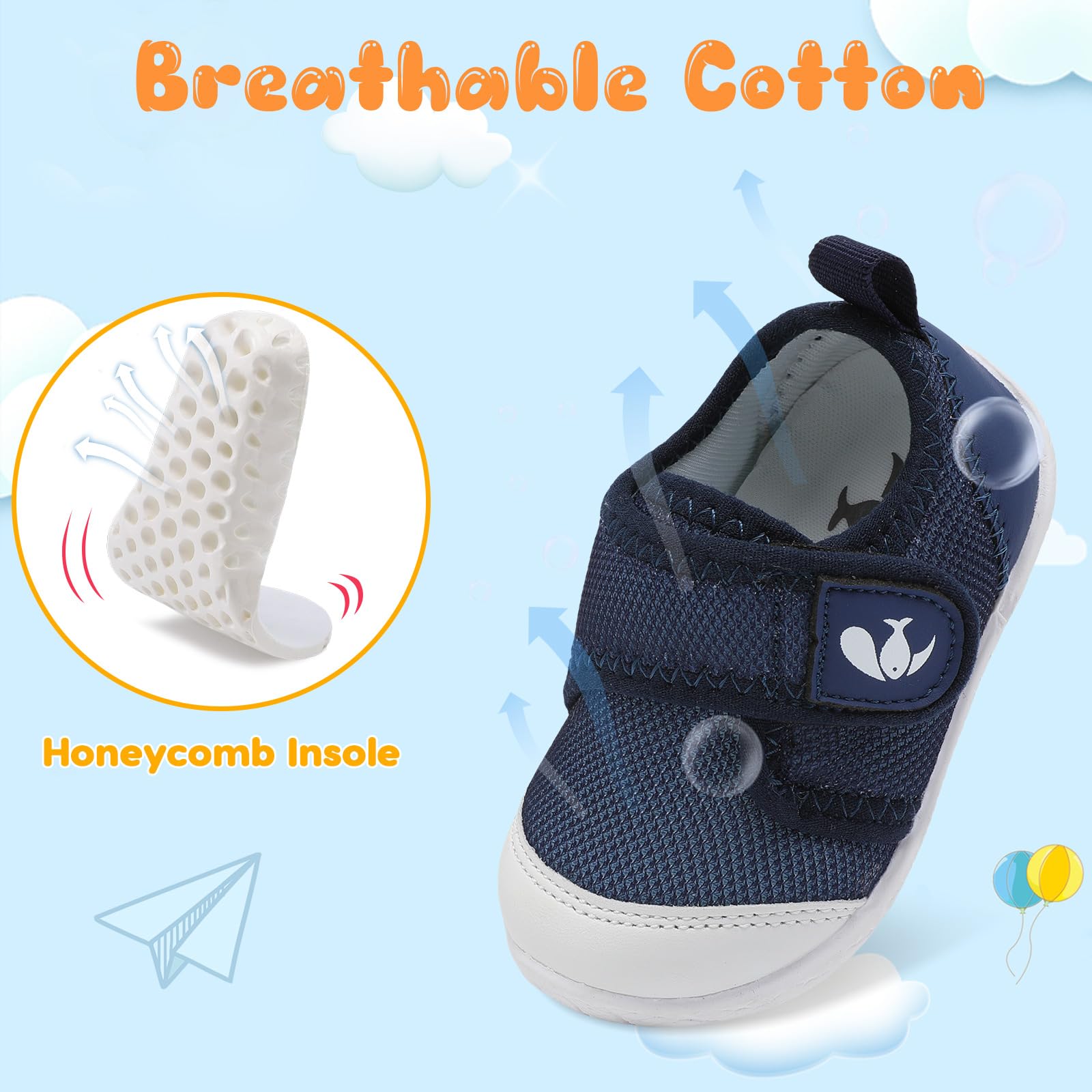 Upper: Premium quality cotton upper, has excellent breathability, moisture wicking function, and keep baby's feet dry and odorless. Super Soft, Breathable and Comfortable fit all the year.