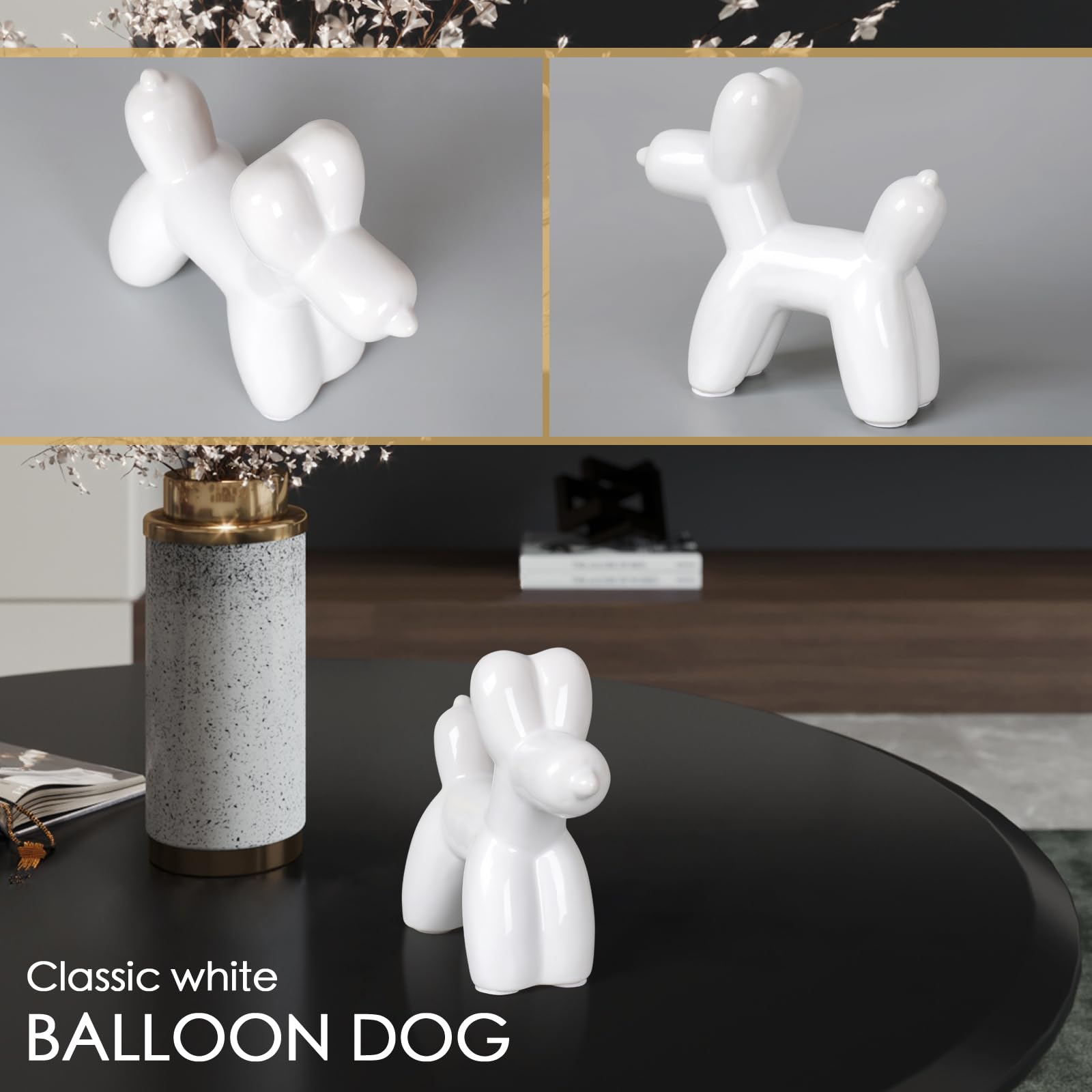 High Quality Material: The balloon dog sculpture is made of non-toxic, odorless, strong and durable high-quality Ceramics , mirror effect, can be used for a long time. with A Layer of White .Looks cute and smooth by using surface polished craft.