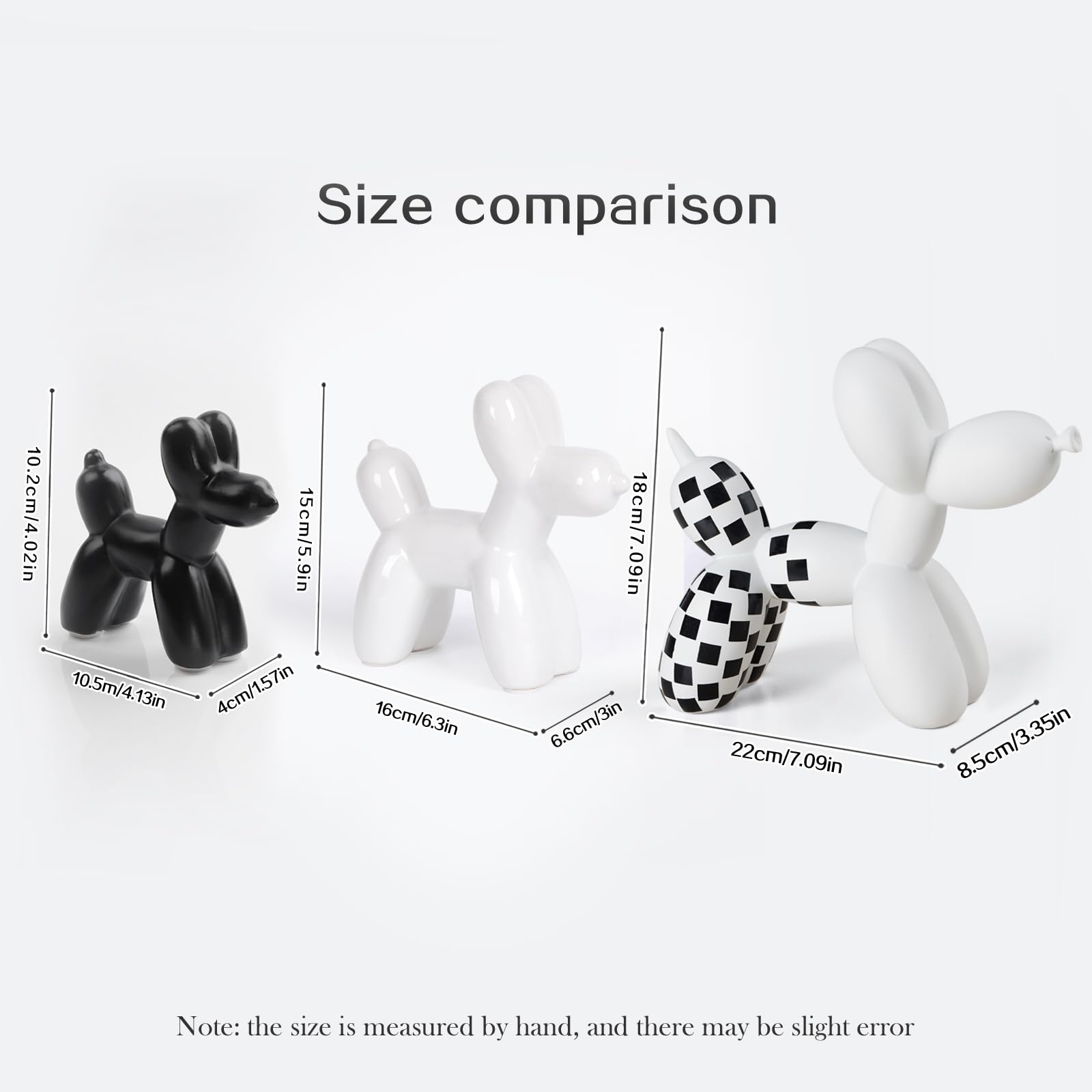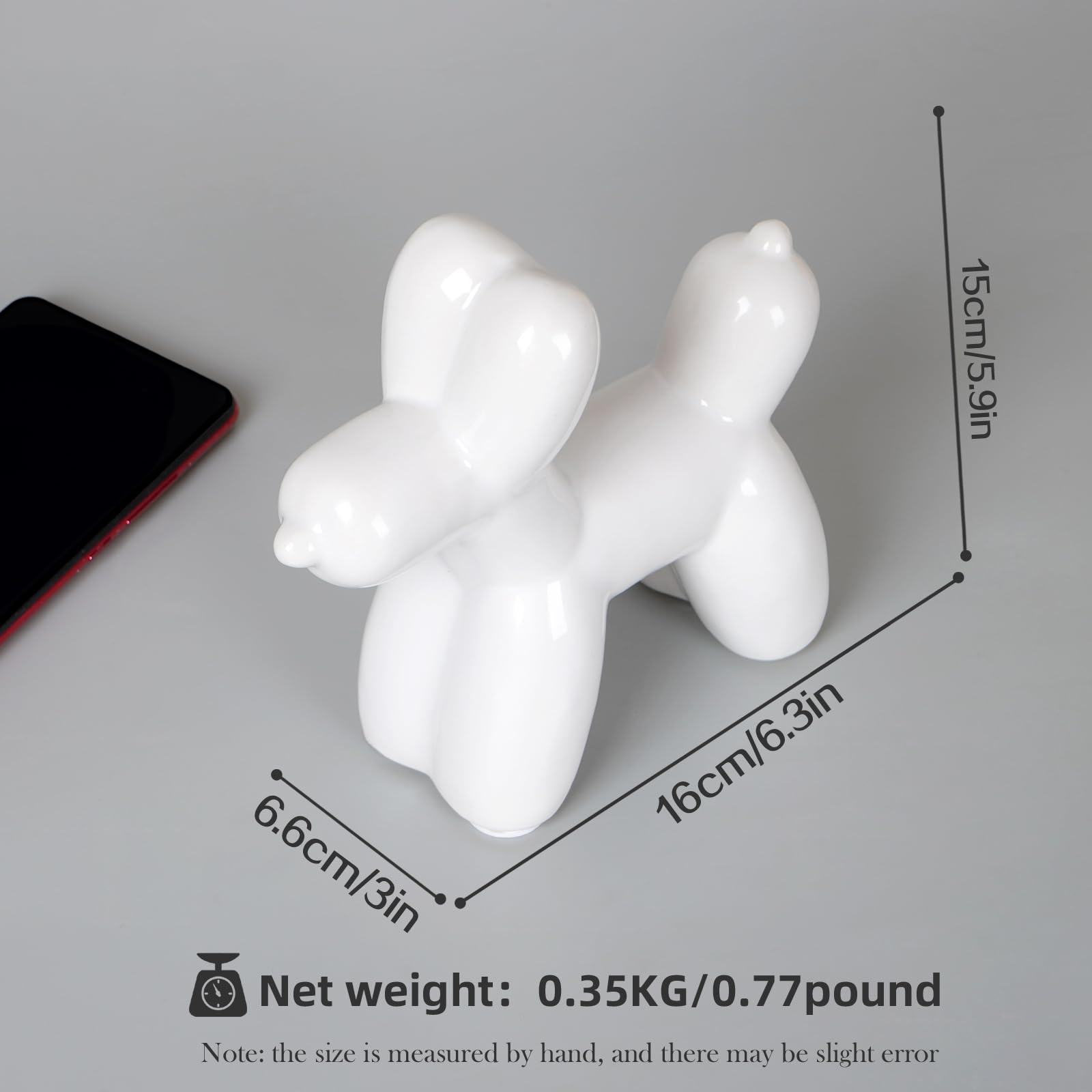 Exquisite Size:White Ceramics Balloon Dog 16*6.6*15cm / 6.3*3.0*5.9 inches. Well made, Super shiny and feels sturdy. Love this little decor item