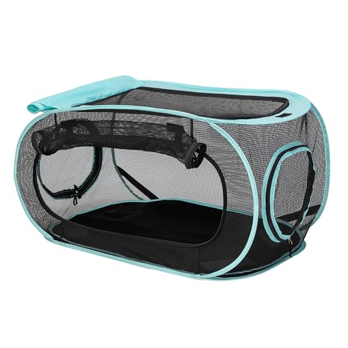 Stylish Teal Trim: The modern teal trim adds a pop of color that beautifully contrasts with the mesh, making this kennel an eye-catching addition, whether it’s on your patio or in your living room.