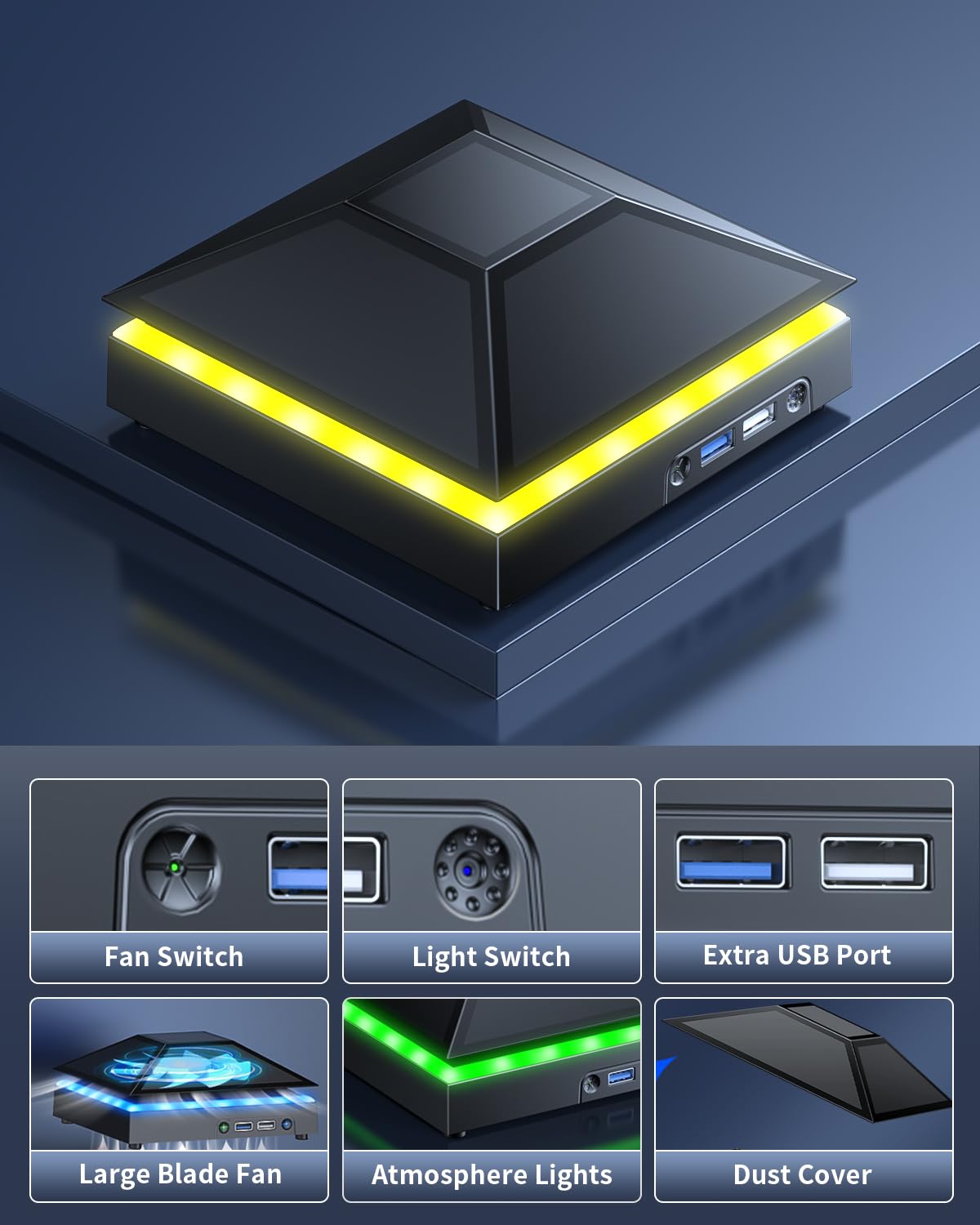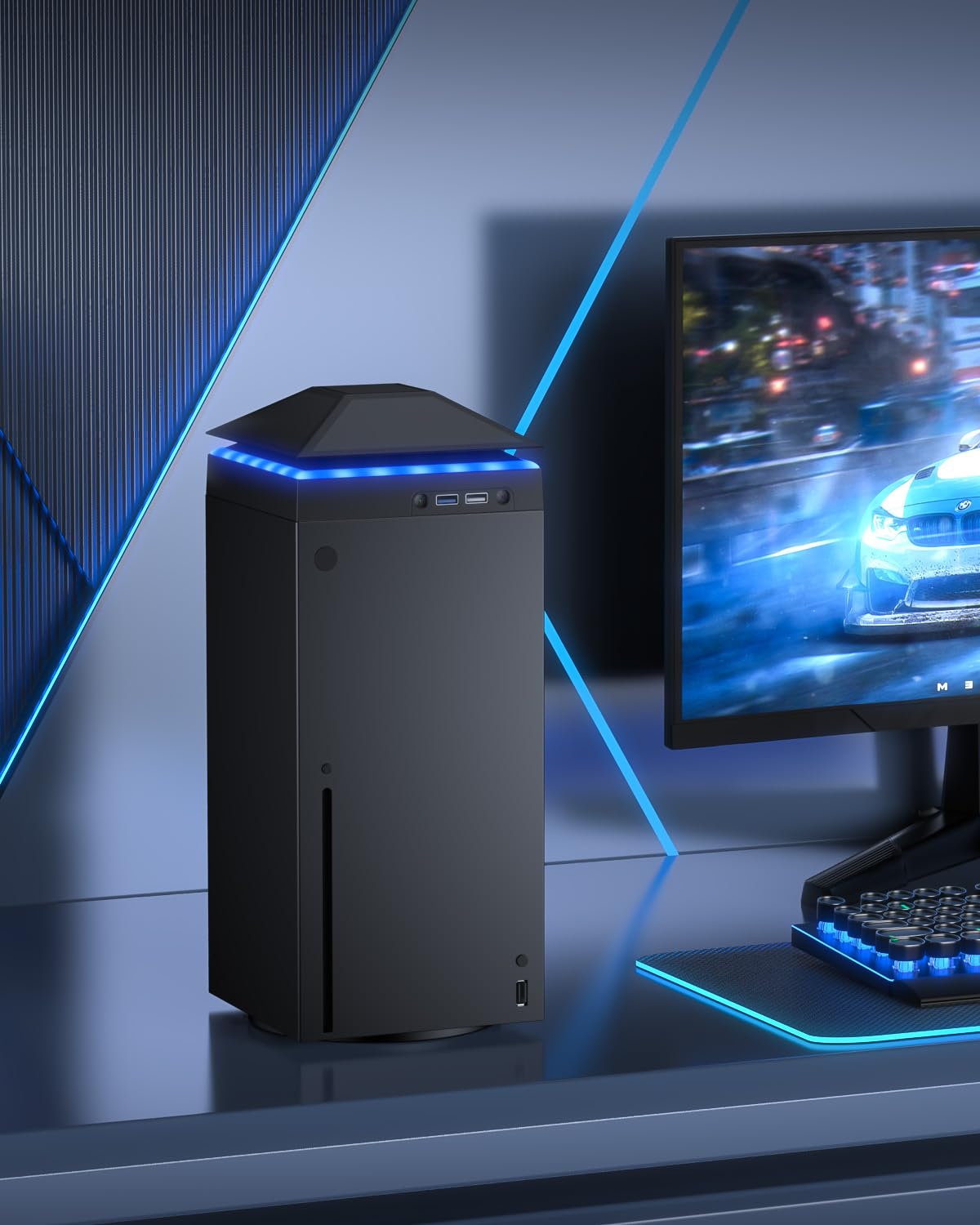 【Necessary for Xbox Series X】---- This product integrates many functions, such as top cooling fan, dust-proof, light strip, USB interface for data transmission and USB port for charging. It helps to prevent for Xbox Series X console from over-heating and dust to extend the life of your console. (NOTE:When the console is working, the dust cover of the fan can be removed to speed up the heat dissipation effect. Alige the two holes under the dust cover first, then cover the dust cover.)