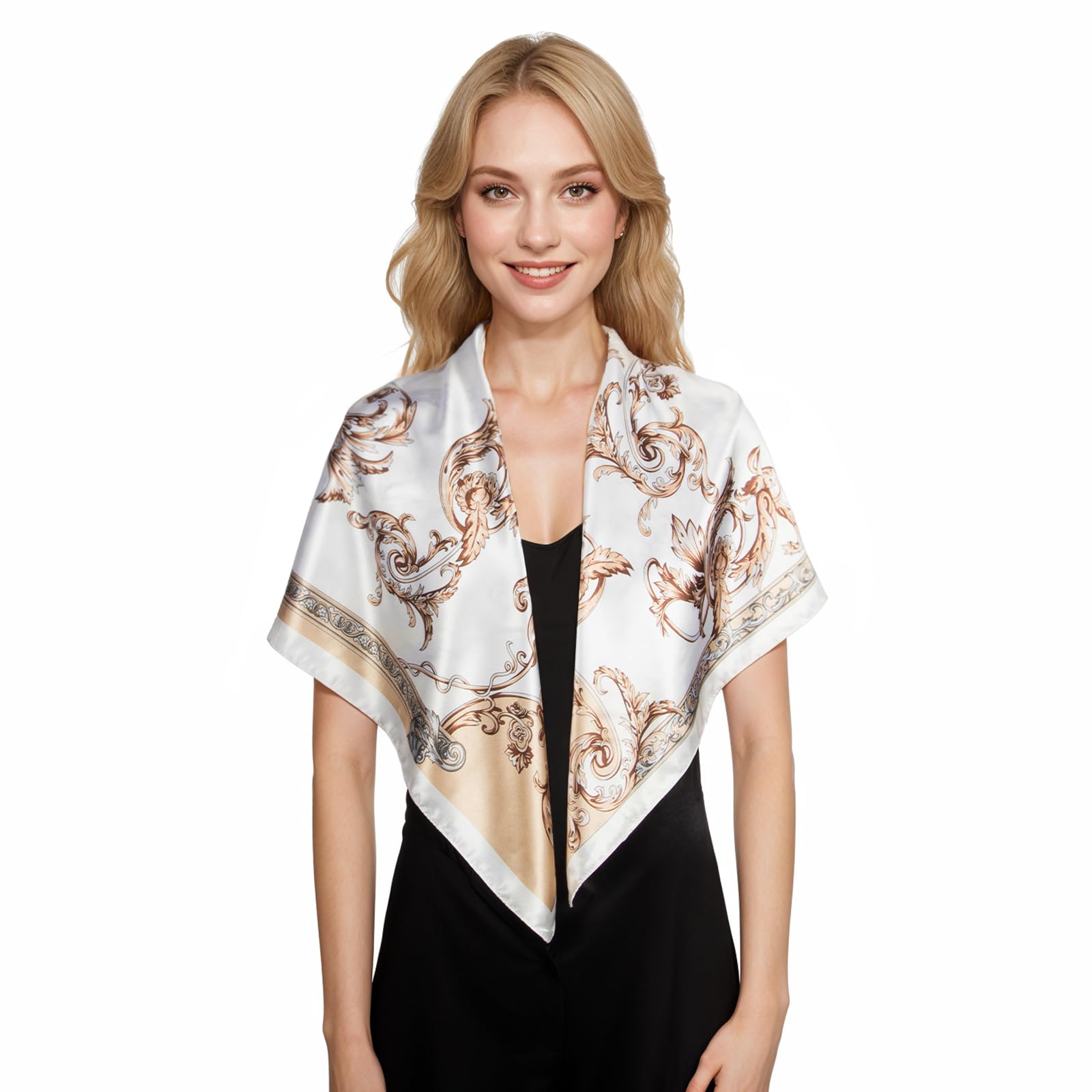 Size of the square scarf is 35 x 35 inches, it is large enough as head scarf for sleeping, and headscarf during the day.The lightweight scarf can make a great decoration for your outfit.
