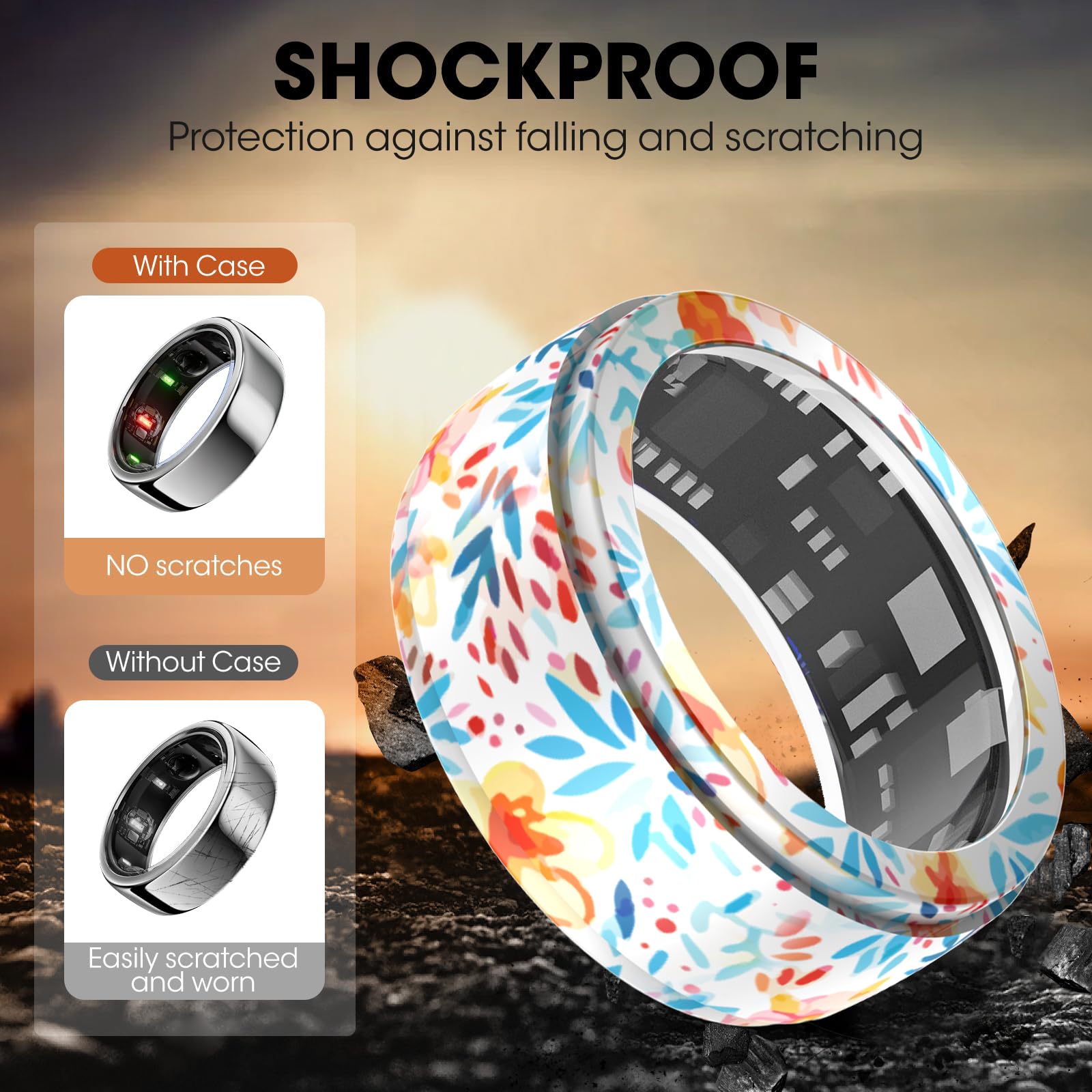 【Strong protection】Shock-proof and shatter-resistant, It can handle impacts and anti-shock bumper and greatly protect the smart ring accident drops, falls and scratches.