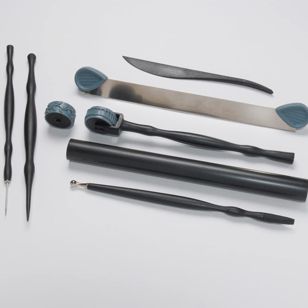 Perfect for all types of crafting materials - The Sculpey Tools Essential Tool Kit is perfect for use with all types of crafting materials including: polymer oven-bake clay, air dry clay, pottery clay and non-dry clay. Versatile Tools in one complete set - 6 mm Dual End Tool: Dual-purpose shaping and smoothing tool. Blunt Point Tool: Plastic tool with two distinctive ends for forming and detailing clay. Clay Roller: Essential tool for rolling smooth, even sheets of clay. Clay Blade with two snap on safety handles: Long Rigid Blade with snap on safety handles for straight cuts or edges on clay. Texture Wheel with two design wheels: Add textures and details to clay with universal handle and Vine and Rope wheels. Clay Knife: Plastic knife for cutting, smoothing and blending clay. Needle End Pointer: Needle tool to create lines, small holes, textures, fine details and patterns. Tools of the trade - This tool set is perfect for all skill levels. These durable tools are easy to work with and clean with soap and water or use a baby wipe. These tools make great mokume gane impression tools for a unique design look! The Essential Tool Kit is perfect for all types of craft projects from jewelry making, mixed media. home decor, holiday and so much more!