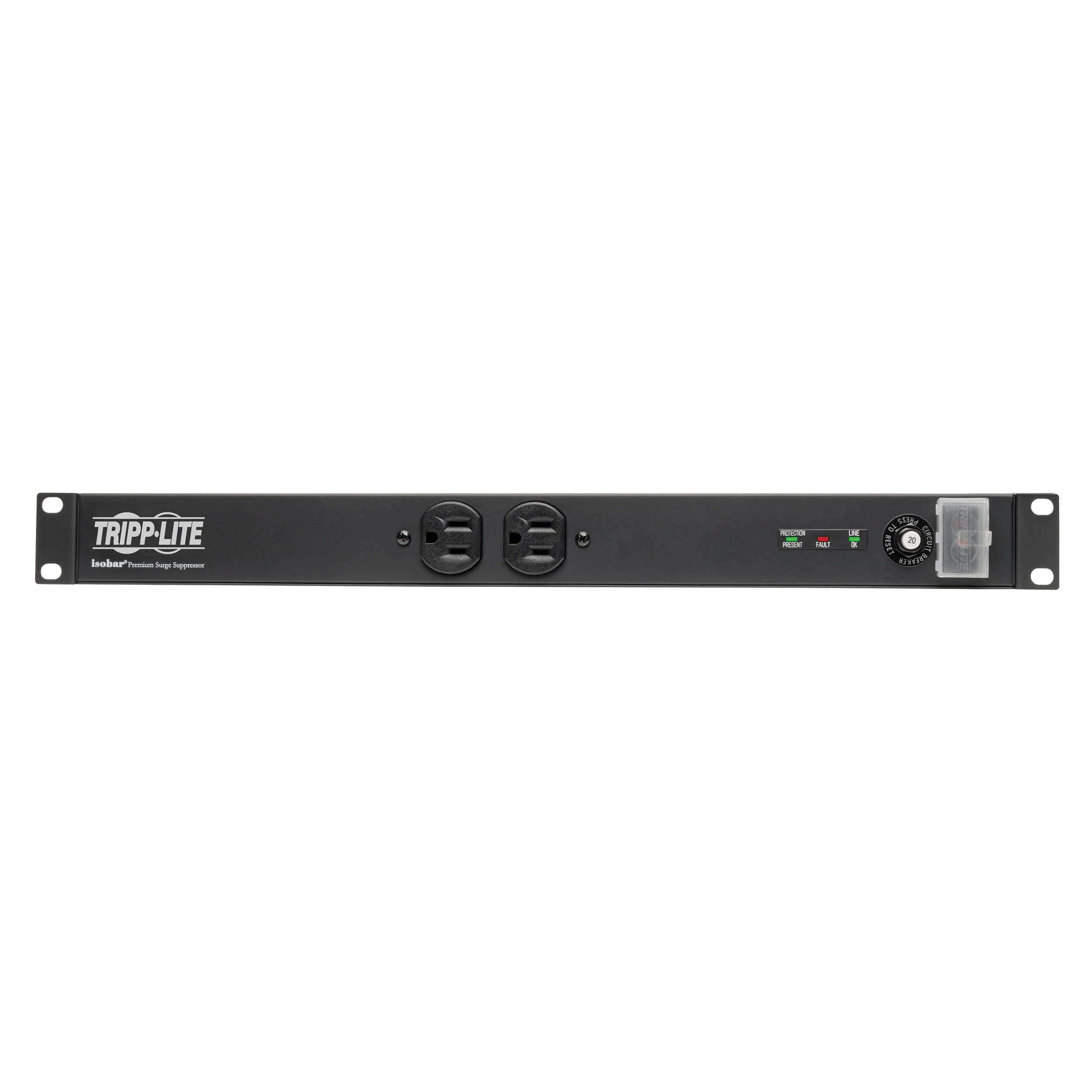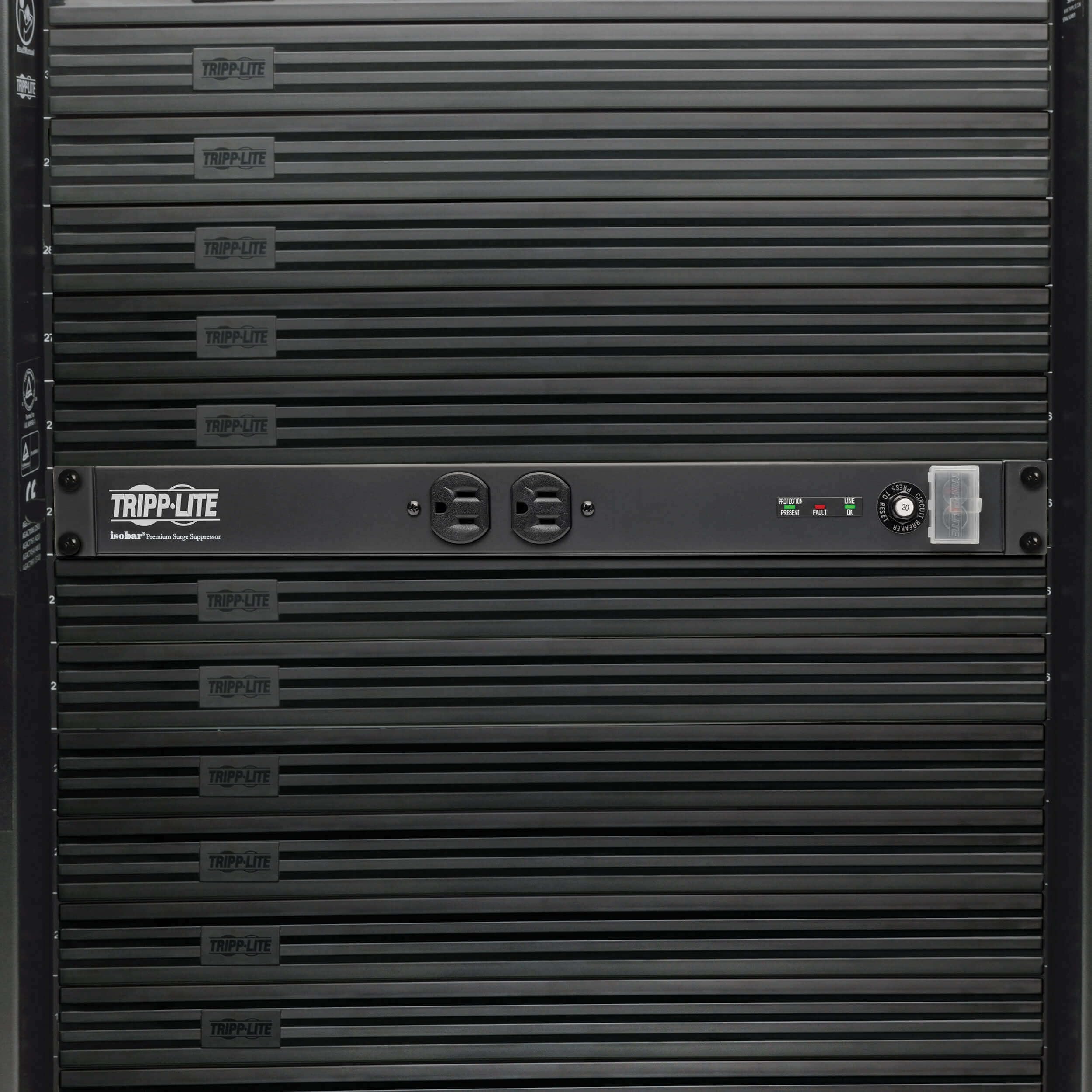 RACKMOUNT ISOBAR SURGE PROTECTOR: Rack-mount surge strip helps protect Audio/Video, IT hardware, and other electronics from dangerous surges & line noise. Features 12 outlets in exclusive isolated filter banks, 2 front 15A and 10 rear 20A outlets.