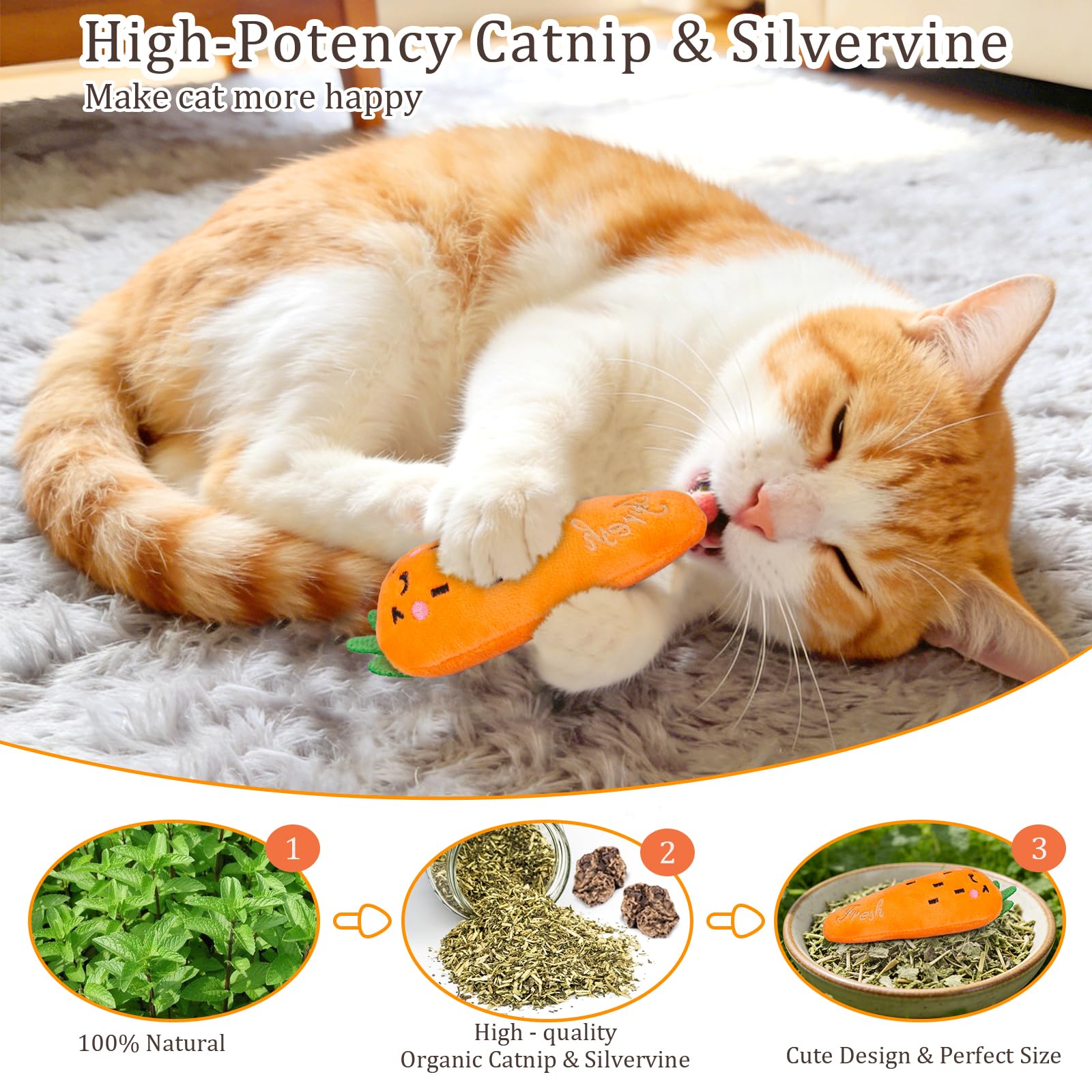 Cute Vegetables Theme: Designed as adorable vegetables shape- perfect for batting, kick, and chewing - these toys satisfy your cat’s natural hunting drive, reduce boredom, support mental engagement, and strengthen your bond through interactive fun