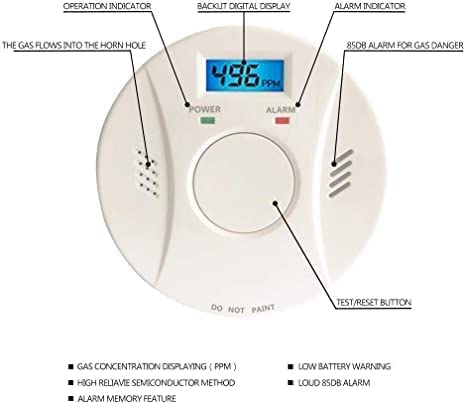 SOUND AND LIGHT ALARM: When a dangerous level of carbon monoxide is detected, the red light will flashes and a loud alarm pattern will sound---Loud 85 decibel carbon monoxide alarm with red light flash to protect your family's life and property safety from co2 detector.