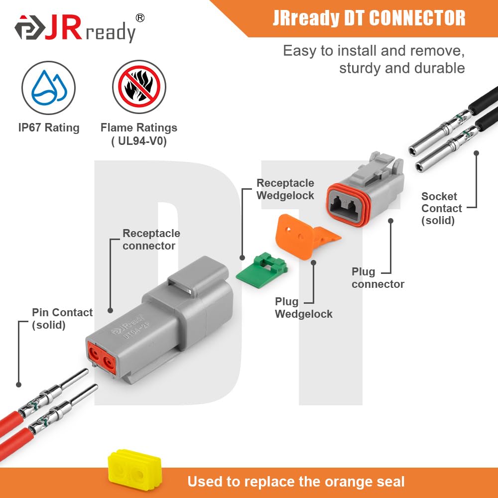 DT Connectors: Crafted from PA66 nylon, our connectors from in 2, 3, 4pin connector, perfect for 14-18AWG wires. Durable and waterpoof,convenient to connect and disconnect,suitable for long time use.