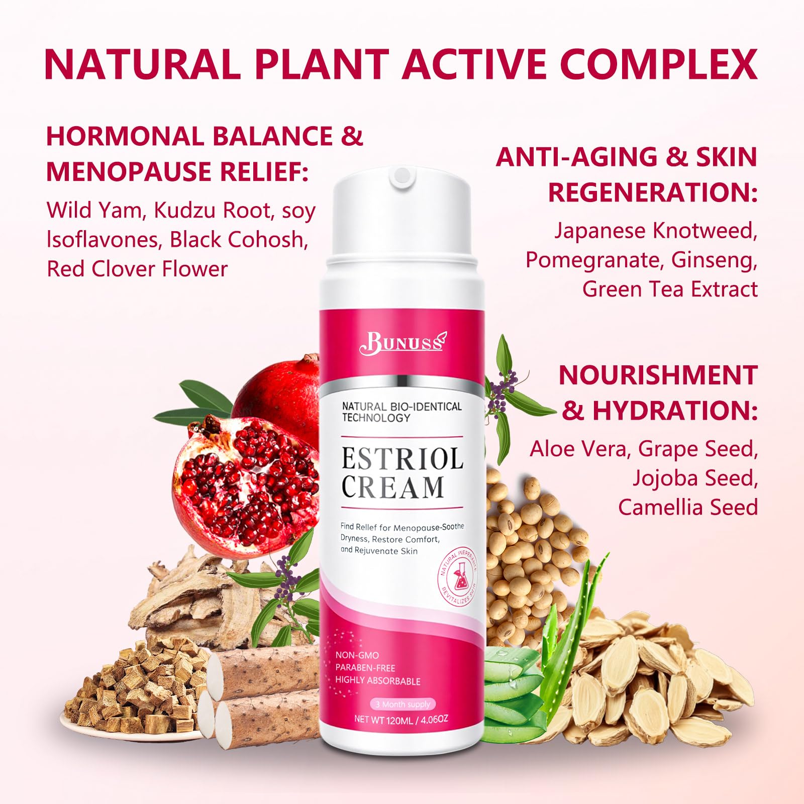 Gentle for Face & Body: This estriol cream restores skin elasticity, reduces thinning, and enhances skin tone. Perfect for the face, neck, and sensitive areas like the chest, inner thighs, and arms.