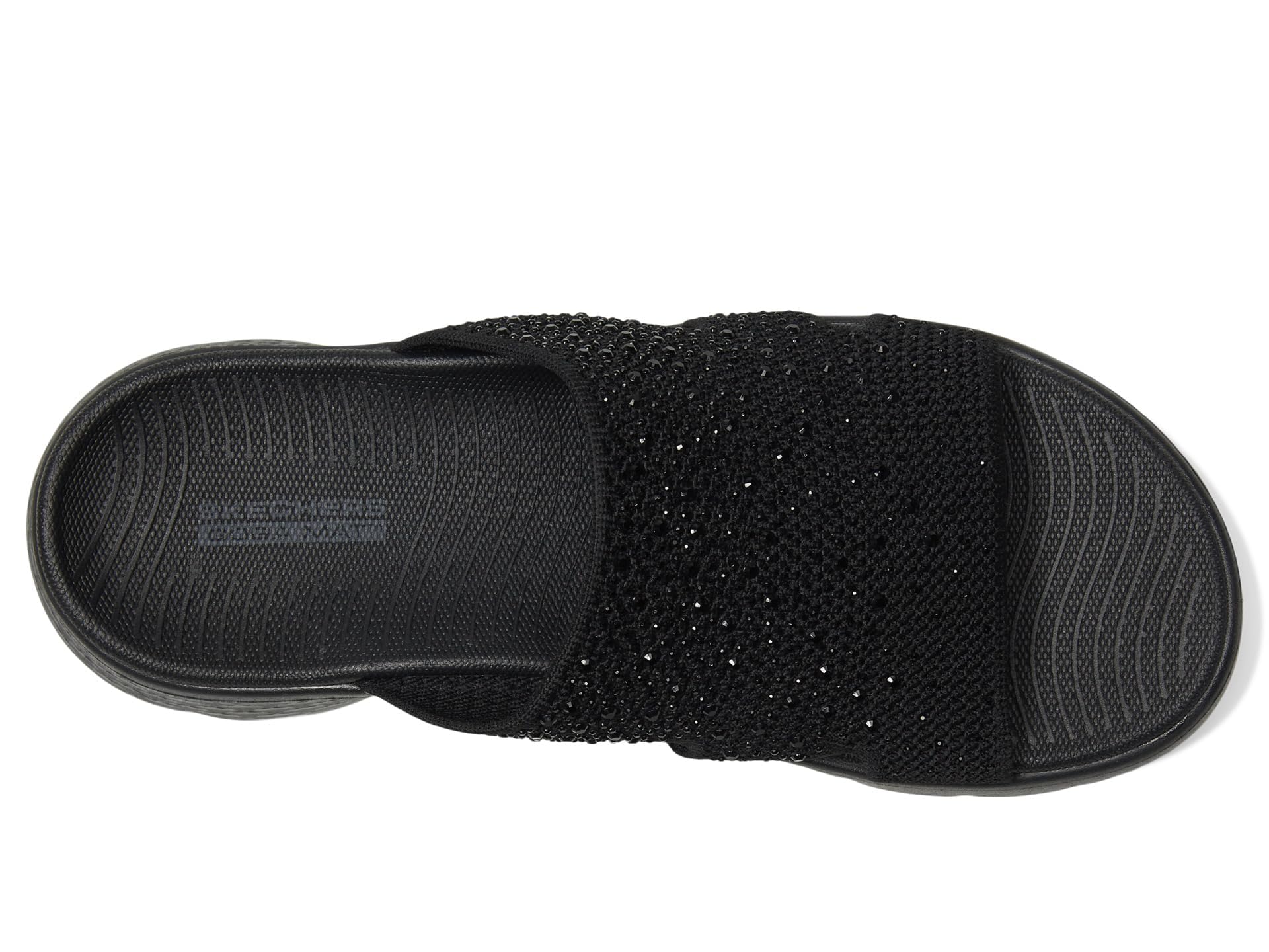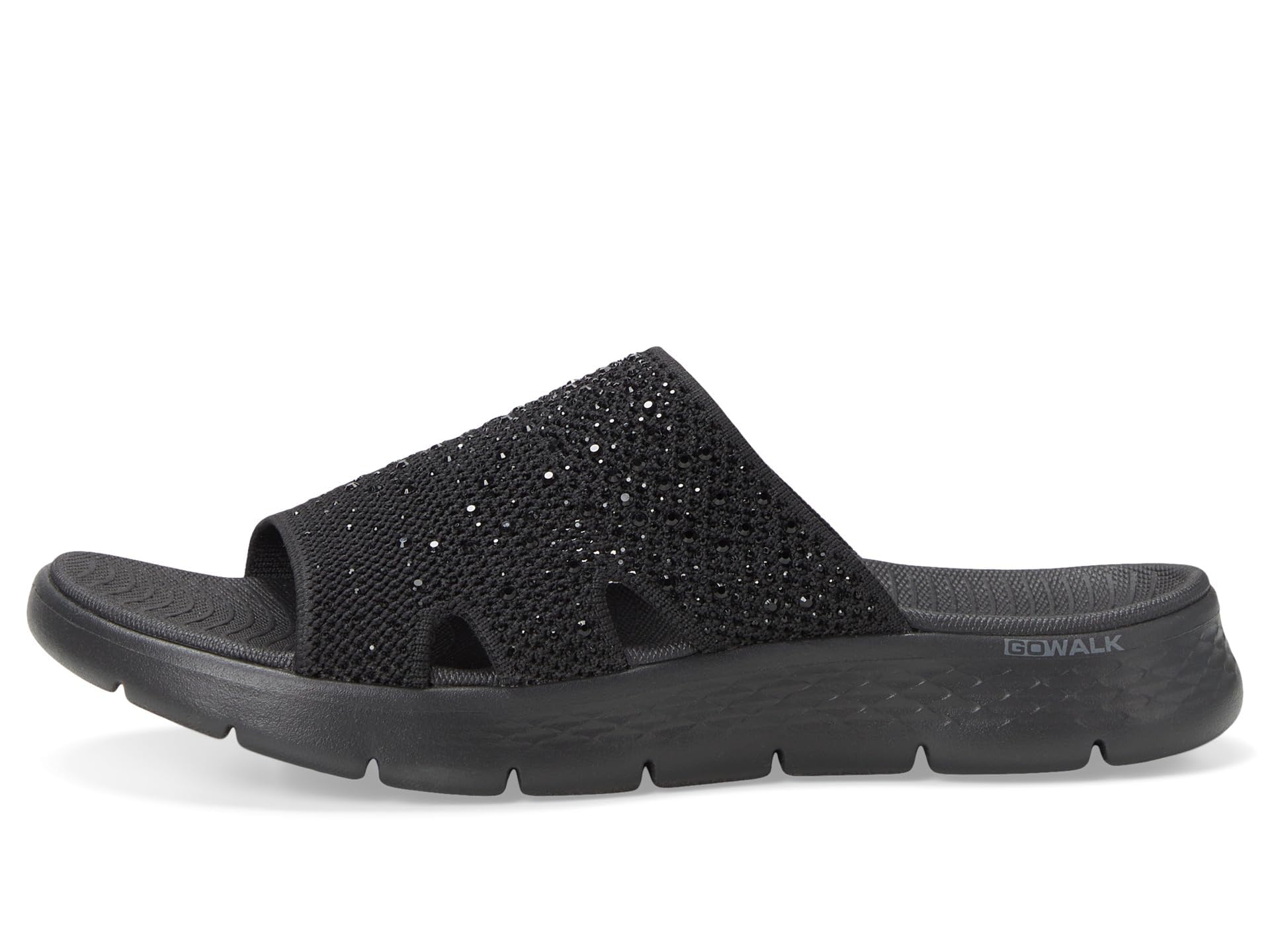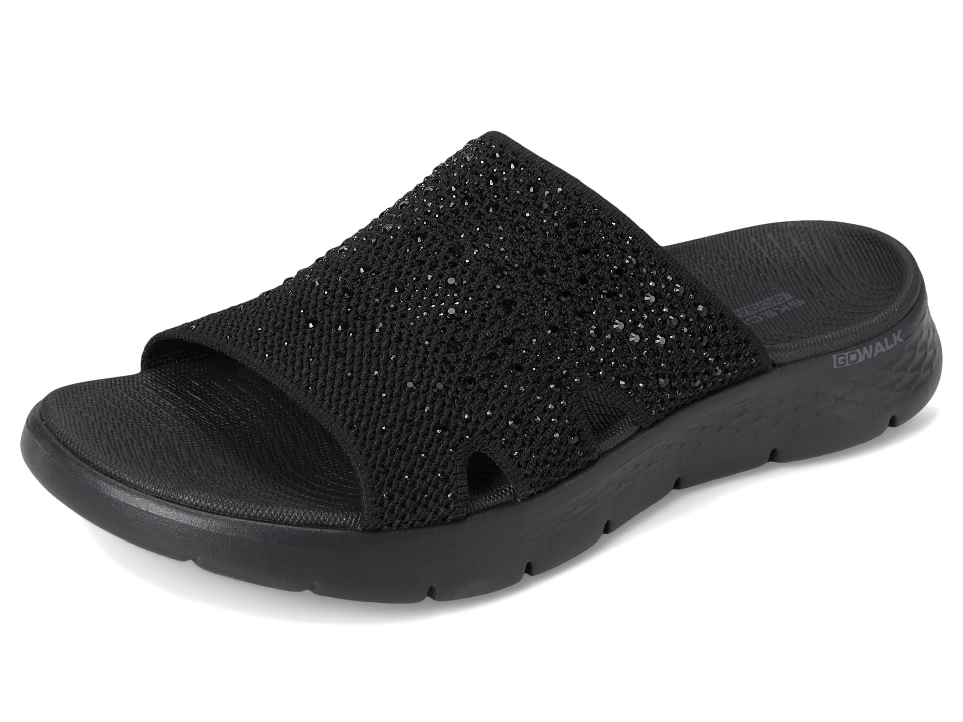 Description Find Glitzy Warm Weather Style With Skechers On-The-Go Go Walk Flex Textured Knit Slide Sandal W/Gradient Rhinestones. This Slide With A Peakabood Upper Features A Knit Upper With Rhinestoe Detail, A Lightweight Ultra Go Cushioning And A Contoured Goga Mat Footbed. Spot Clean.