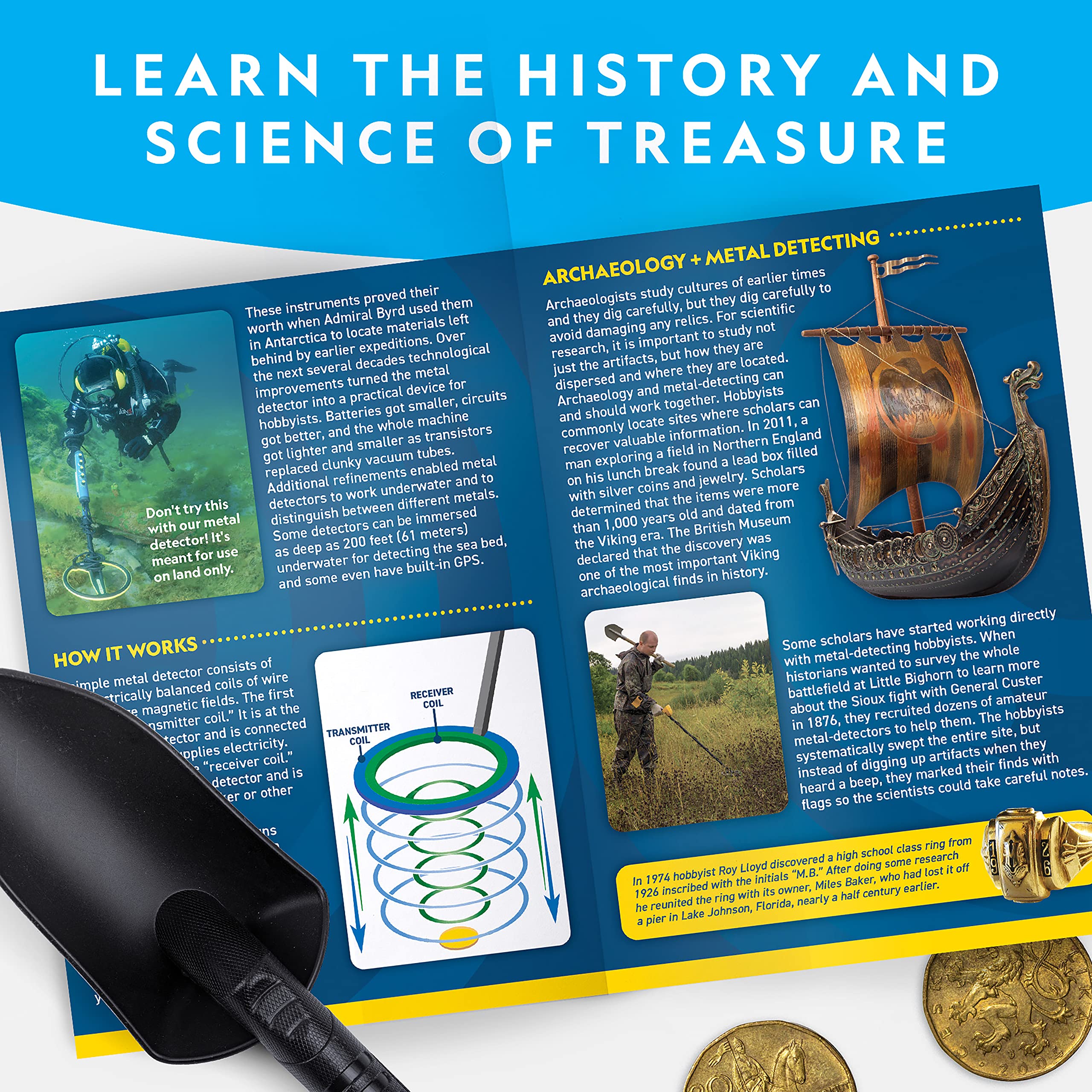 METAL DETECTOR ACCESSORIES INCLUDED - This metal detector kit also includes a trowel that makes digging up your finds super easy! A detailed Learning Guide is also included that teaches the history of metal detecting and more!