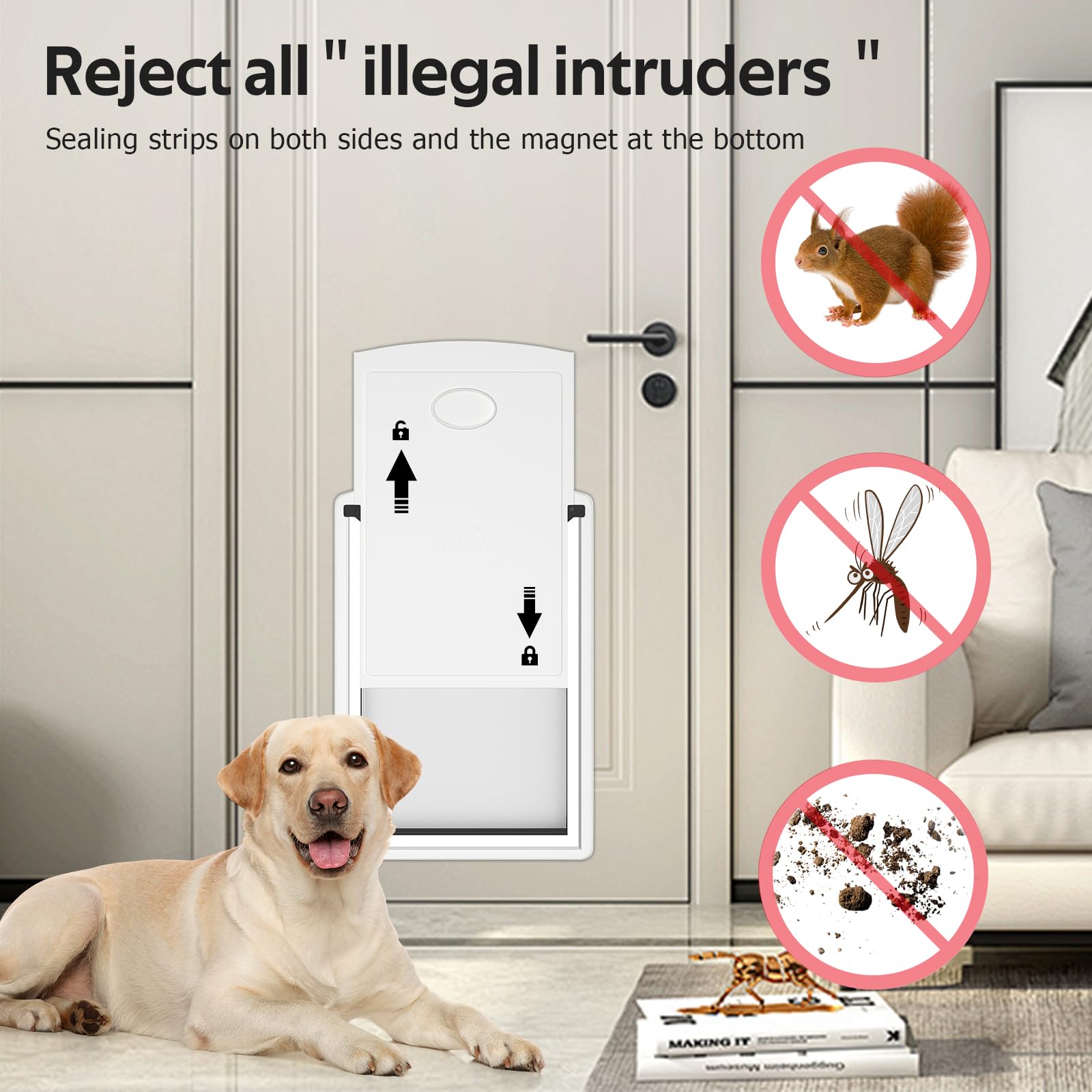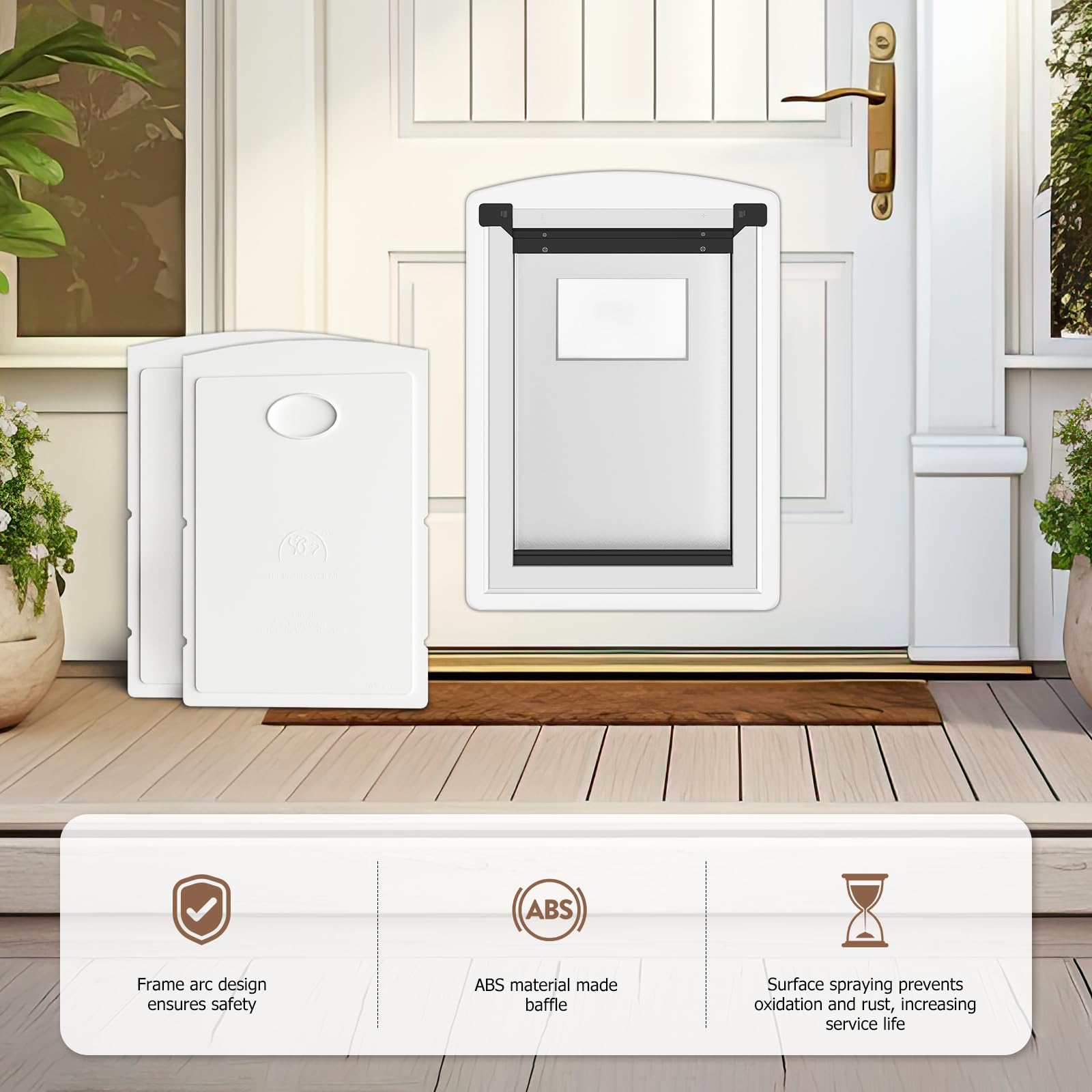 [Strong and Durable] Our dog door frame is made of high quality steel, more durable and suitable for active dogs; the magnetic flap is made of PVC material with an effective sun protection, as well as keep an even tighter seal when closing, to prevent extreme weather.